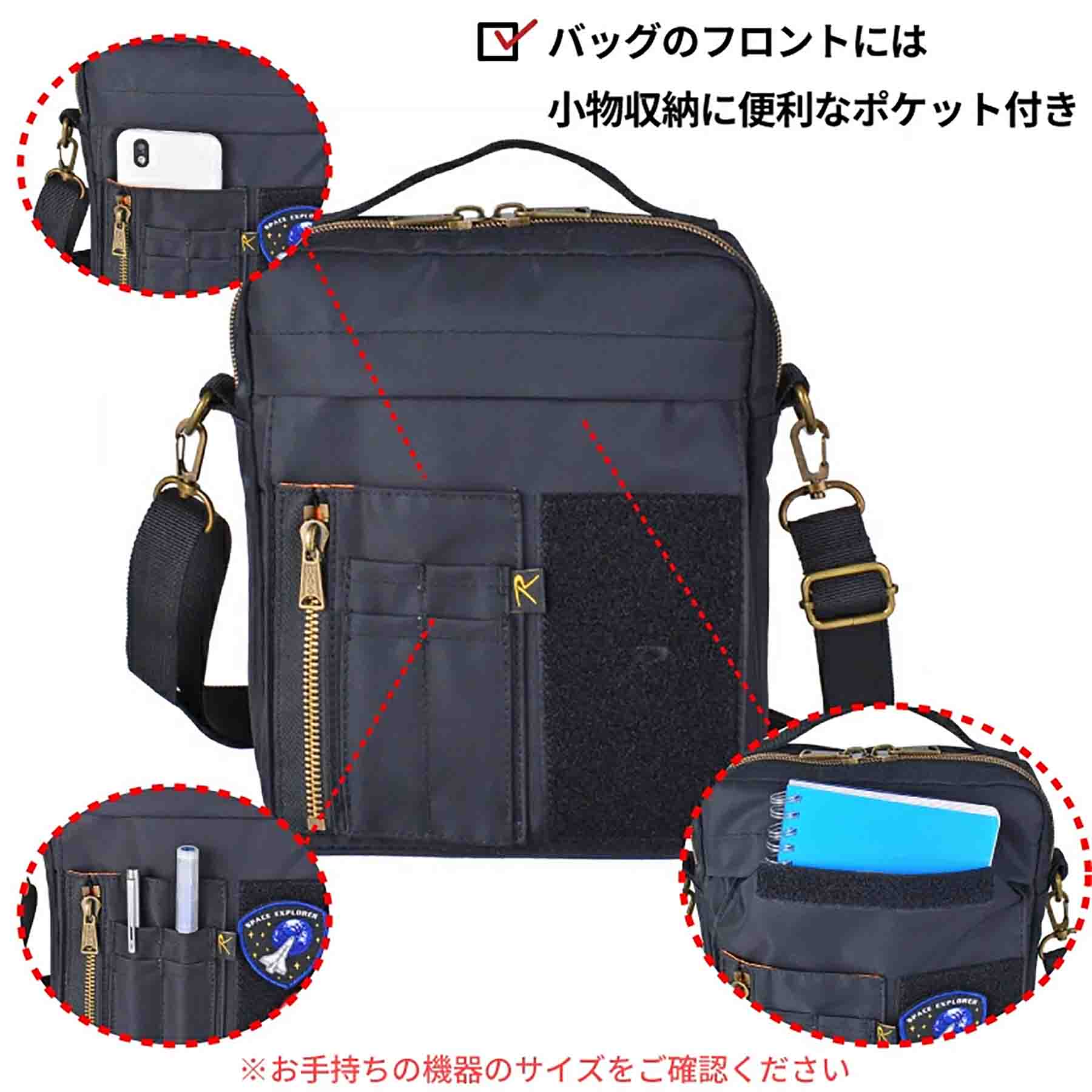 ロスコ エアフォース 縦型ショルダーバッグ 45077は、MA-1フライトジャケットのユーティリティポケットなど、ミリタリーテイストを落とし込んだカジュアルシリーズのバッグです。