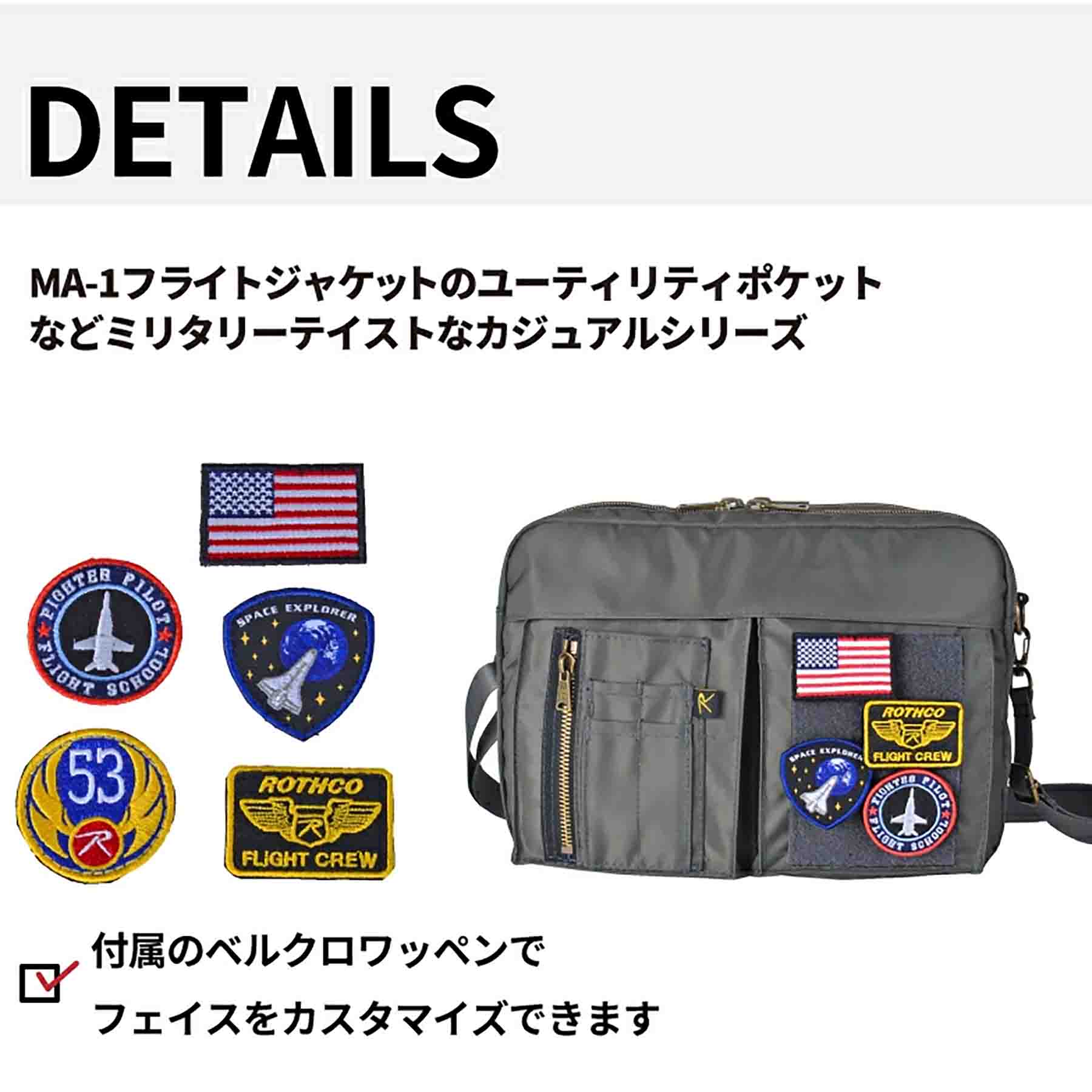 ロスコ エアフォース 横型ショルダーバッグ 45081は、MA-1フライトジャケットのユーティリティポケットなど、ミリタリーテイストを落とし込んだカジュアルシリーズのバッグです。