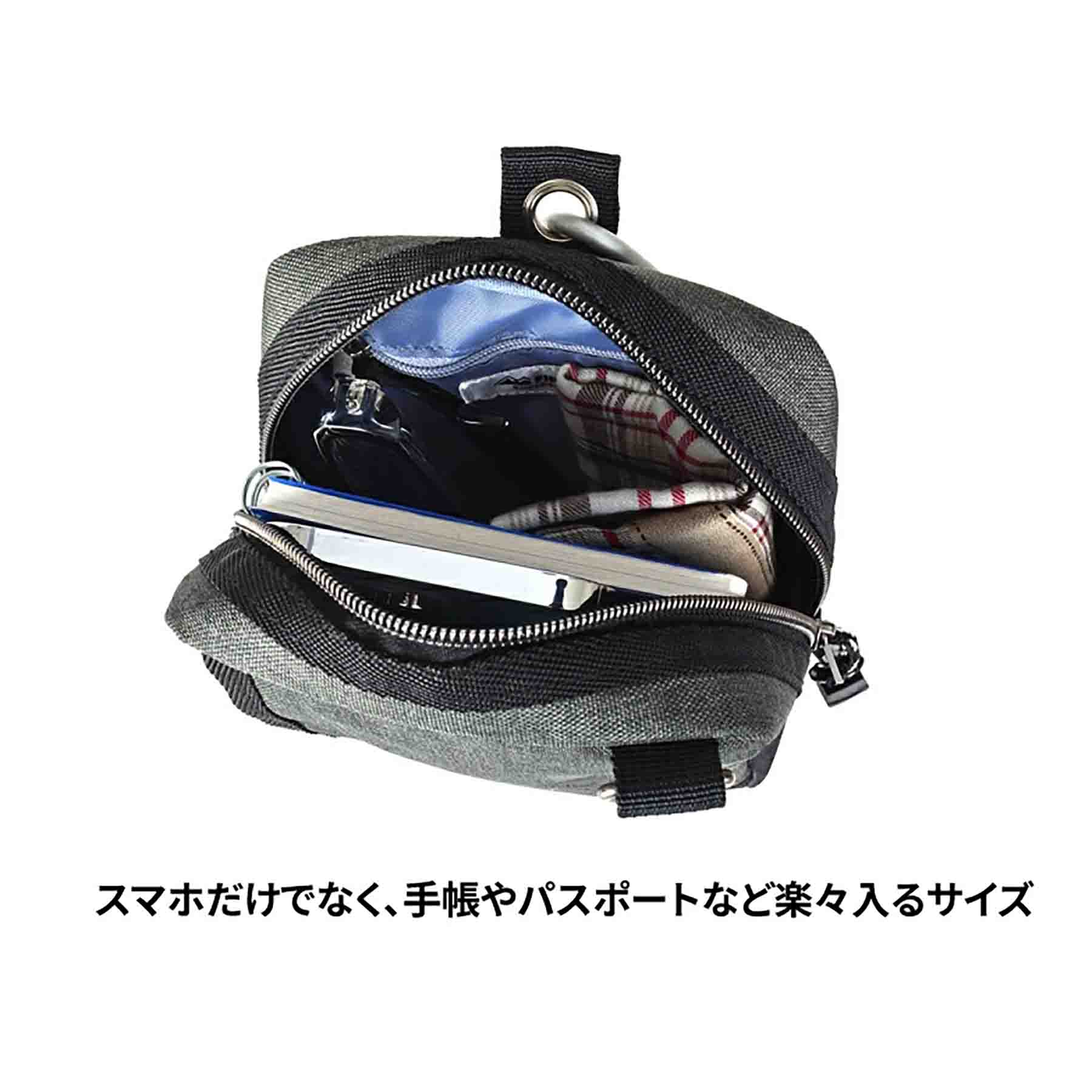 スマホだけでなく、手帳やパスポートなど楽々入るサイズでアウトドアシーン、タウンユース、スポーツや旅行のサブバッグにもおすすめです。