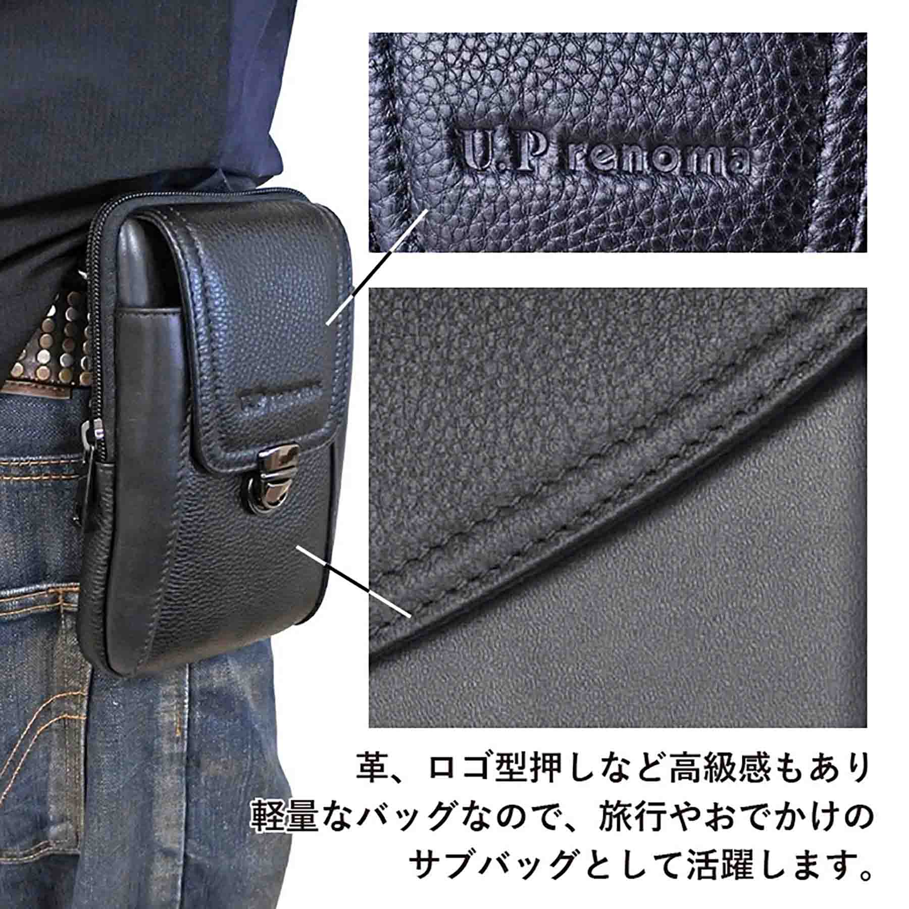 ユーピーレノマ 革スマホ立カブセポーチ 20109は、ベルトループとショルダーベルトを付属しているのシーンに合わせて2通りの使い方ができるポーチです。