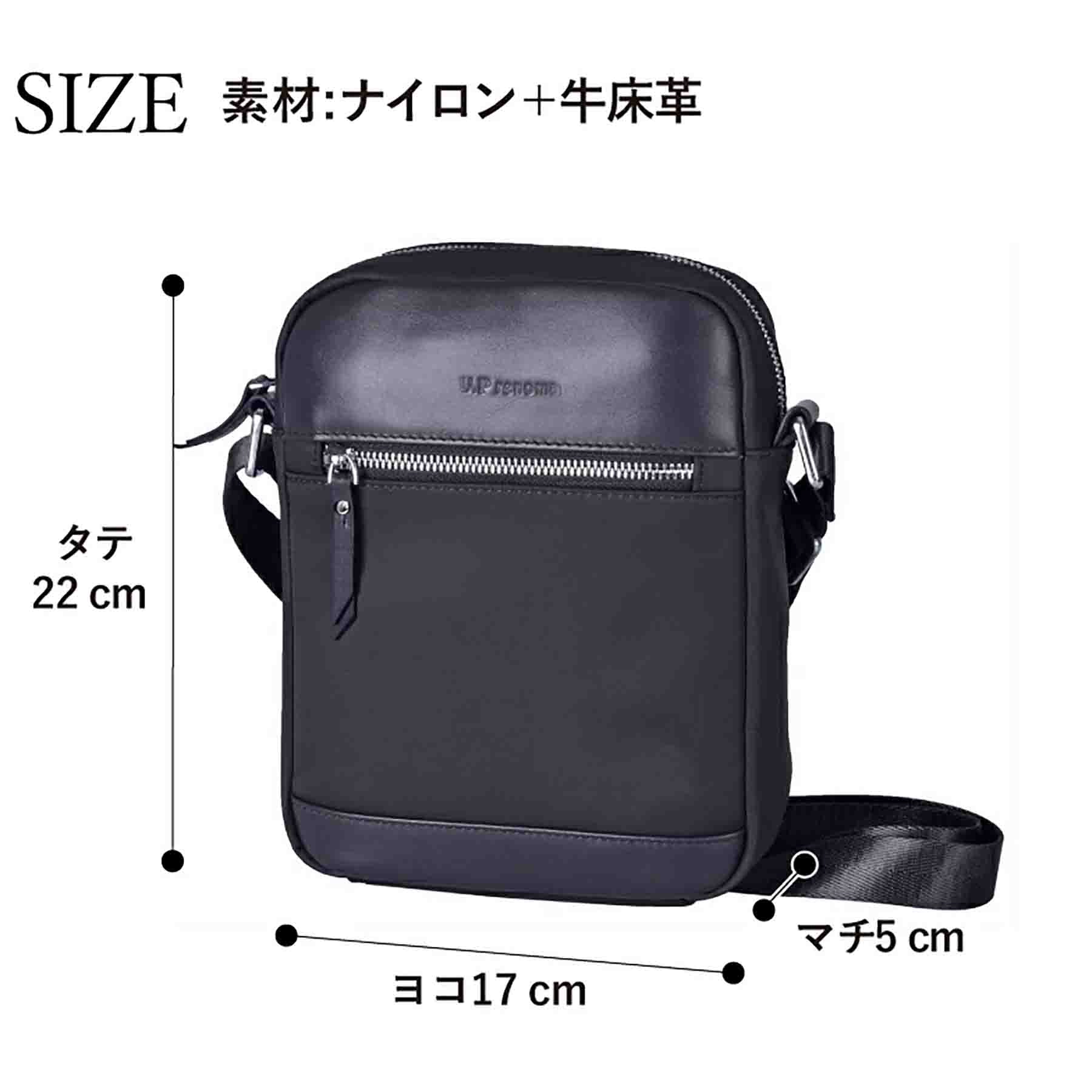 U.P renoma 革×ナイロン 縦ショルダー 20113 ブラック