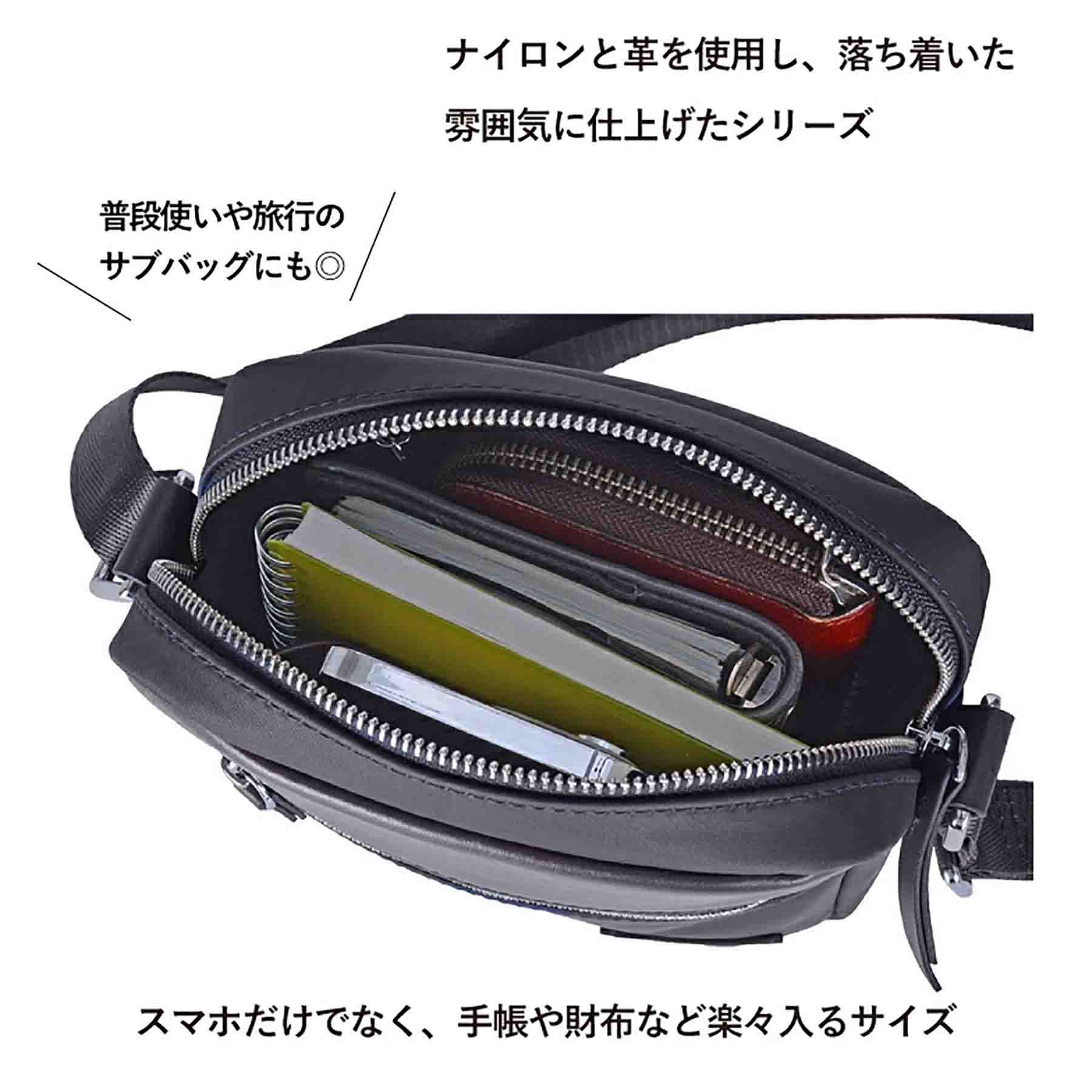 ユーピーレノマ 革×ナイロン 縦ショルダー 20113は、ナイロンと革を使用し、落ち着いた雰囲気に仕上げたシリーズのバッグです。