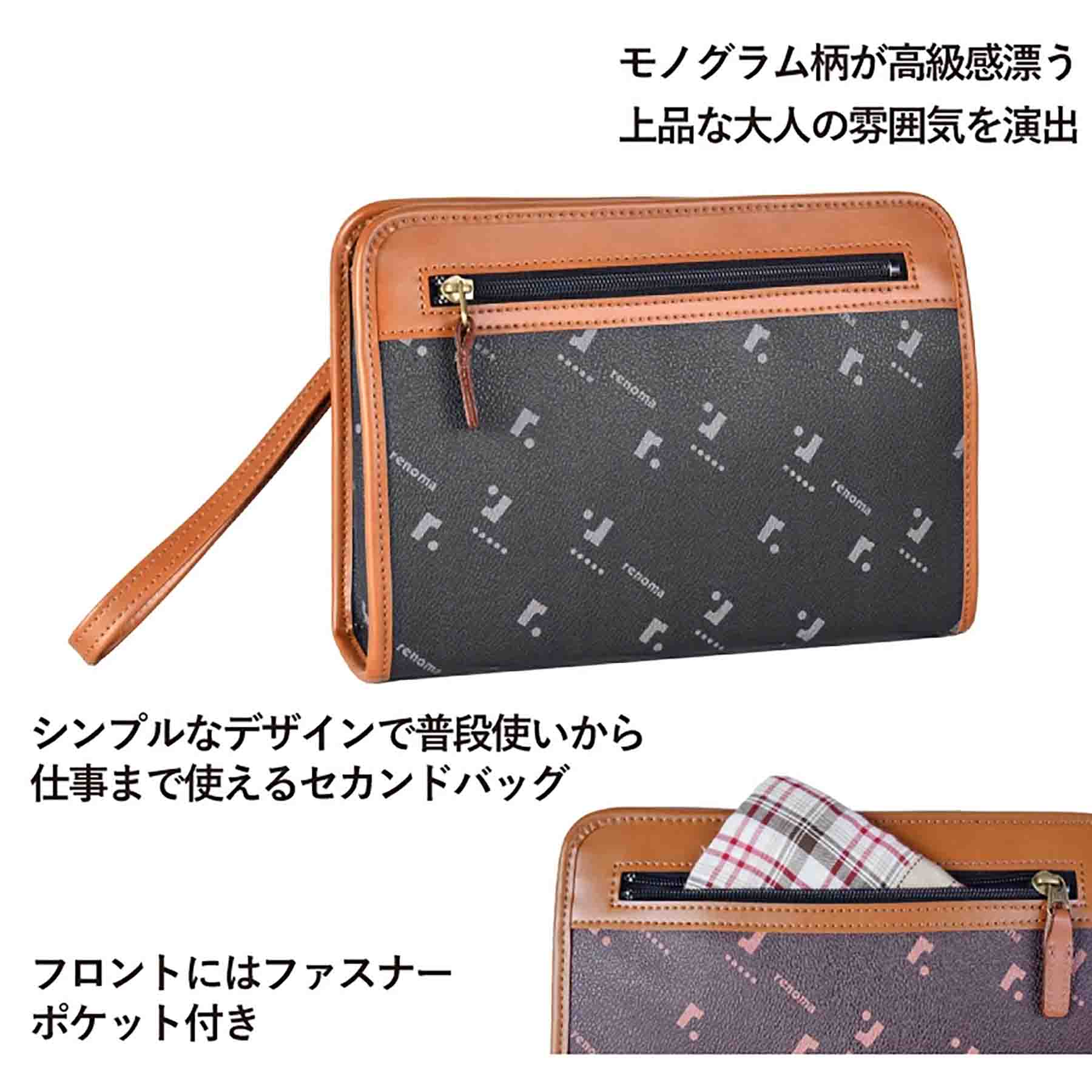 ユーピーレノマ モノグラム 角ポーチ 20118は、シンプルなデザインで普段使いから仕事まであらゆるスタイルにマッチするセカンドバッグです。