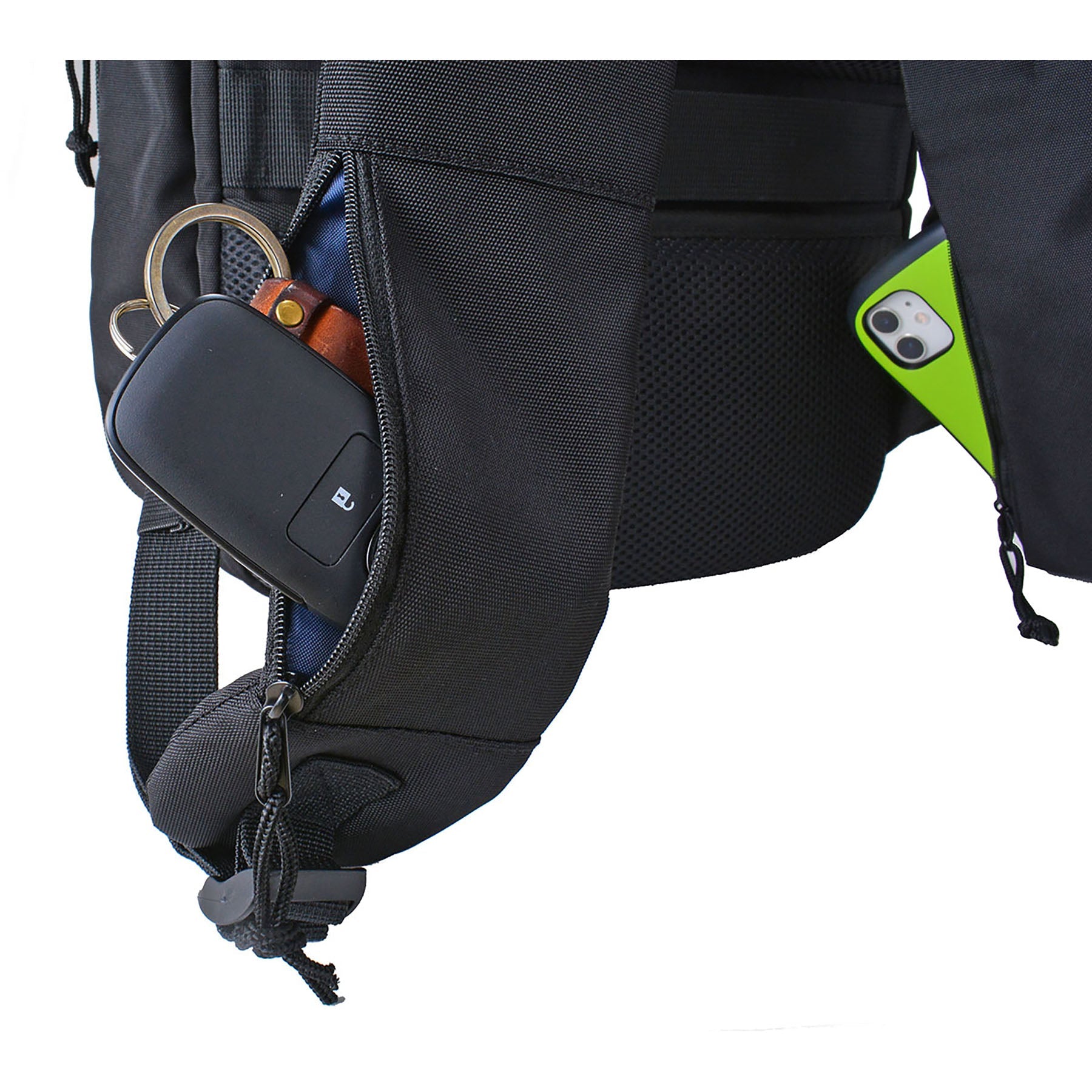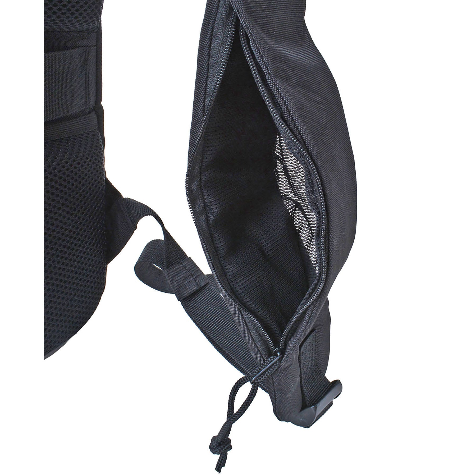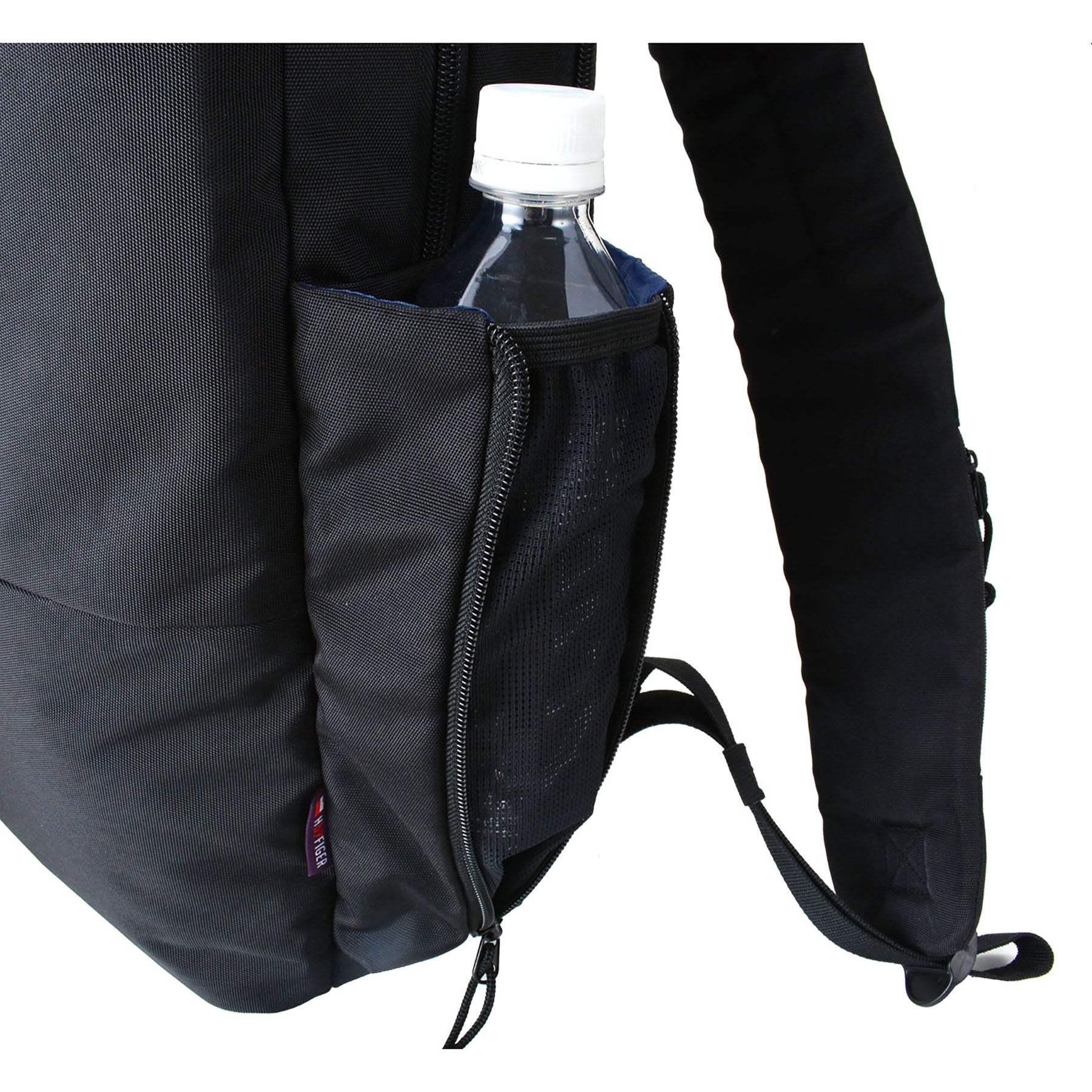 PC収納がありサイドのファスナーを開けるとペットボトルや折畳み傘などの収納も可能です。