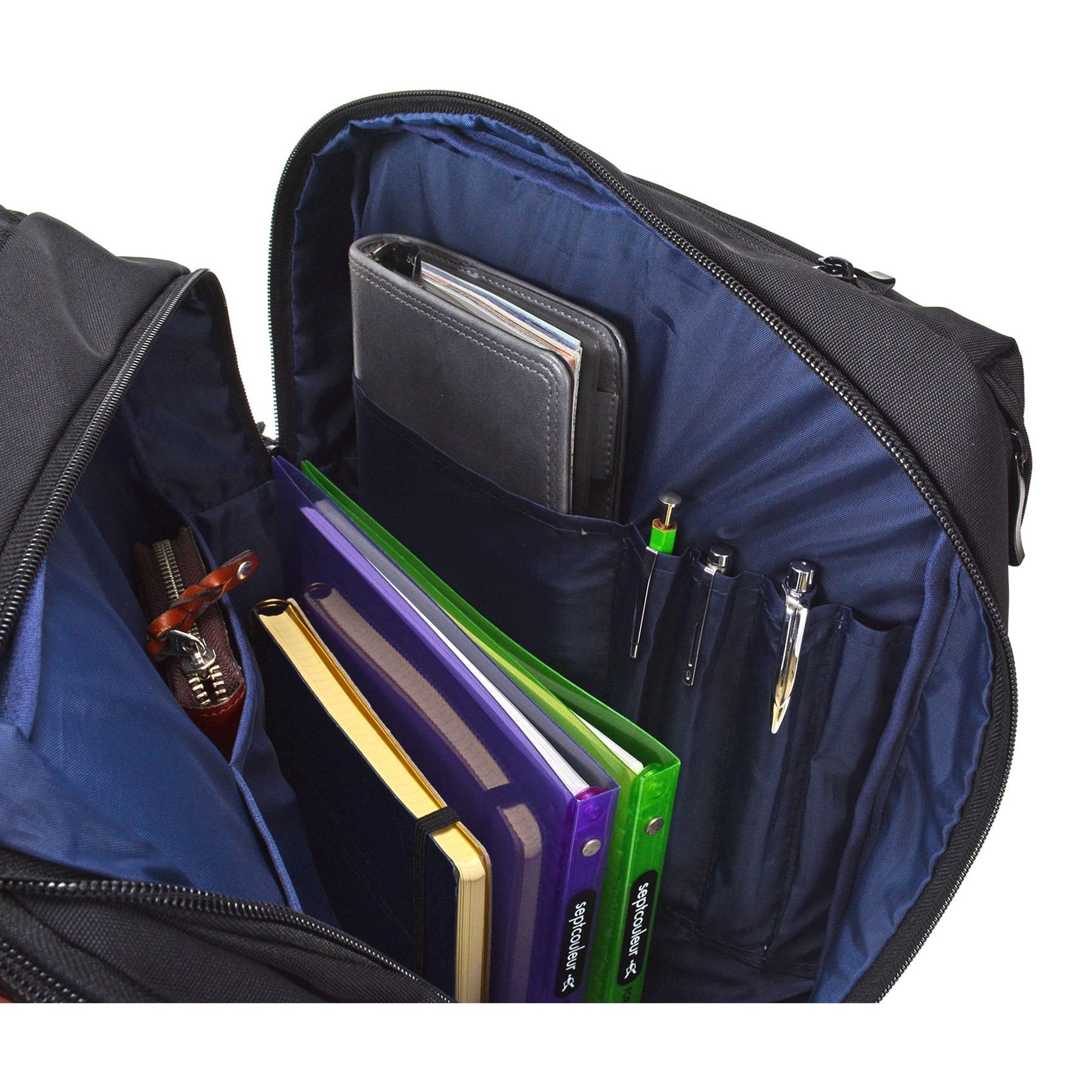 内側ポケットにはペン差しや小物収納ポケットが備えるられております。