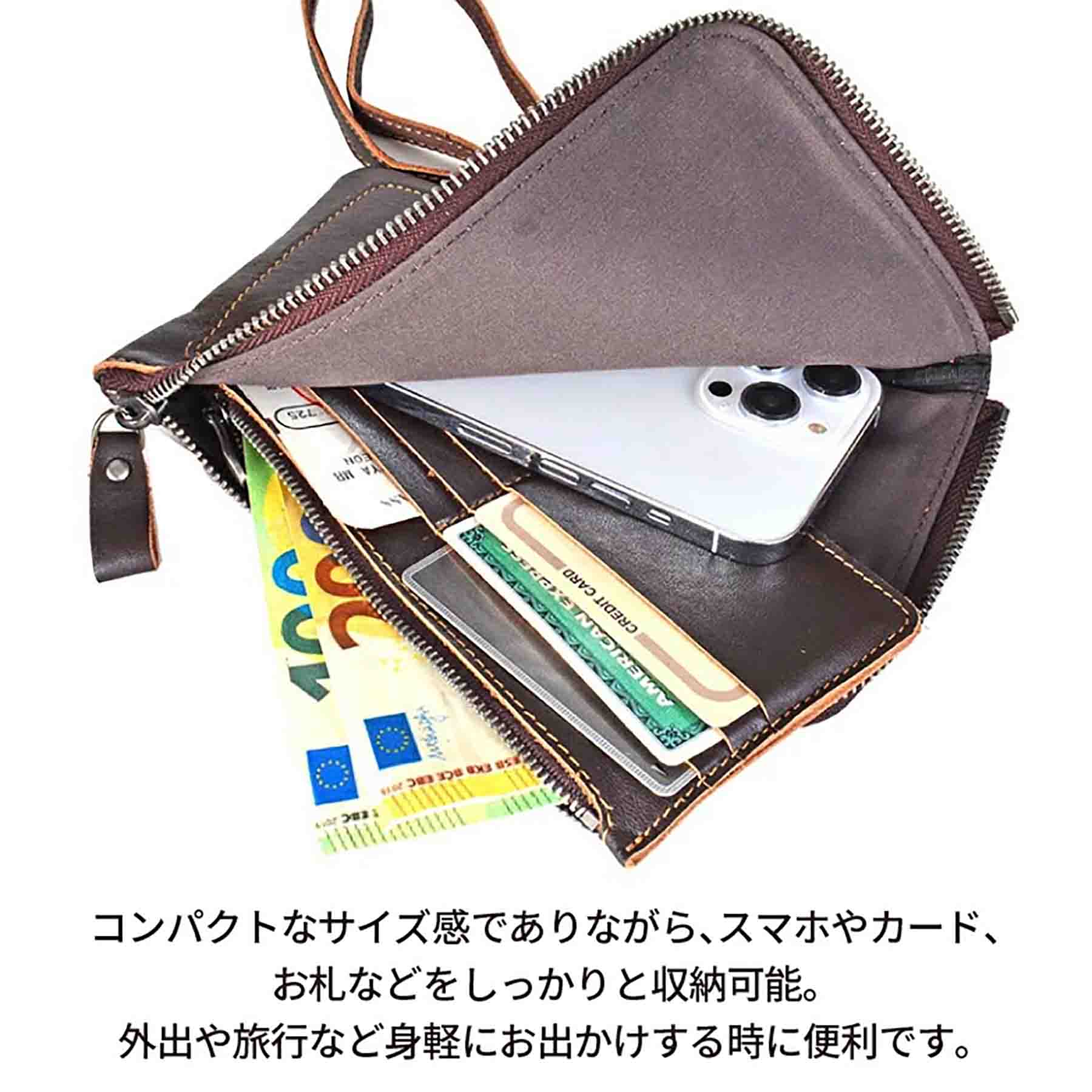 コンパクトなサイズ感でありながら、スマホやカード、お札などをしっかりと収納できます。