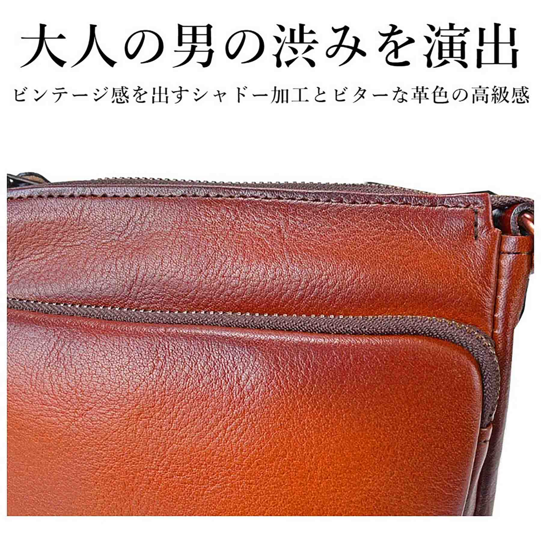 ジェムベーシック 牛革シャドー サコッシュ 1503は、陰影をつけてビンテージ感を出すシャドー加工している兵庫県豊岡市で生まれた、匠の技が光る逸品のバッグです。