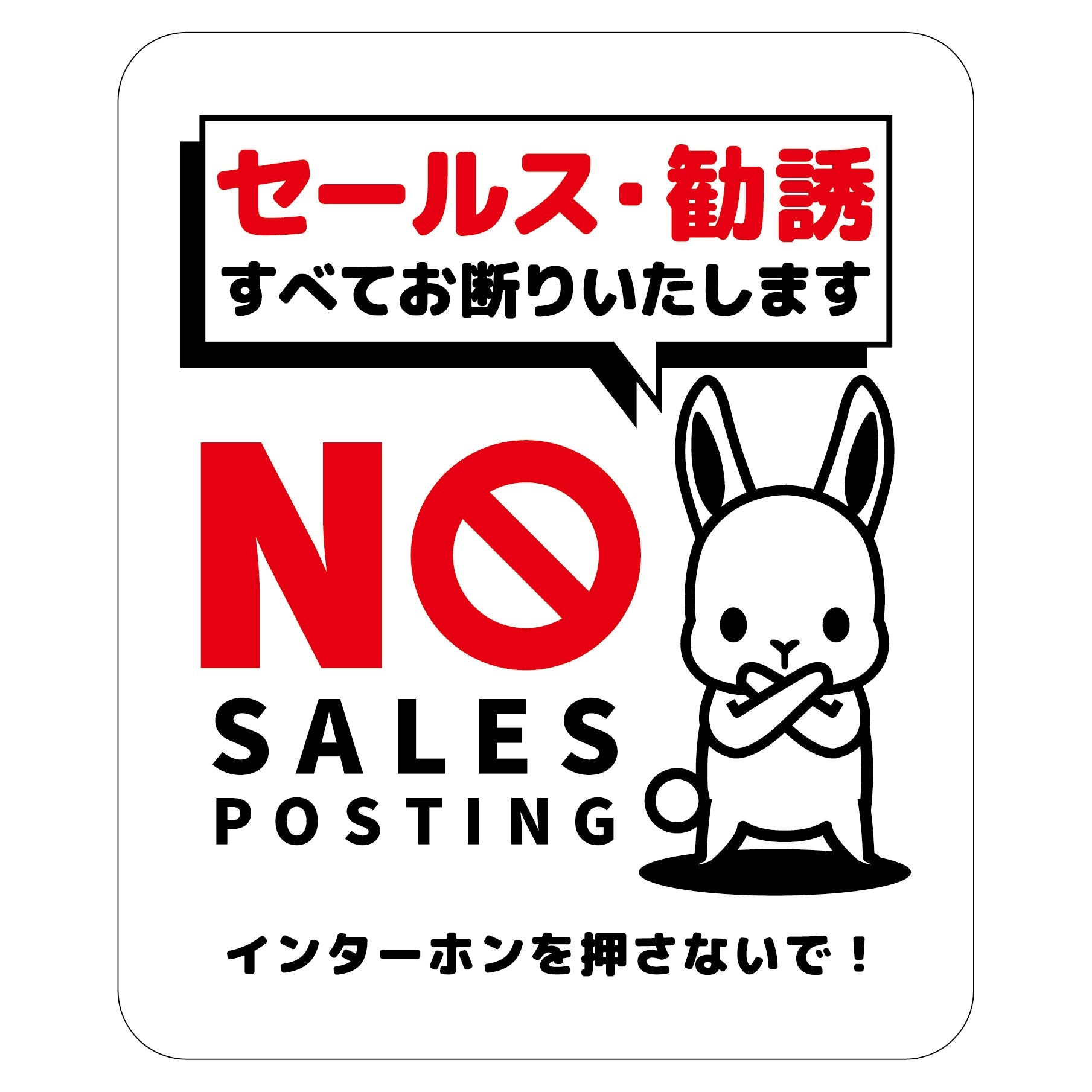セールスお断り標識、しつこい訪問販売や勧誘などの迷惑なセールスをお断りしてくれる標識です。赤ちゃんやペットがいて、インターホンを鳴らされたくない場合にもオススメです。訪問販売の相談は、電話勧誘販売と並んで最も多い現状にあり、多発する訪問販売被害を防止するのに効果的です。 景観を損ねることなく、様々な箇所に取り付けて注意を促せます。ステッカータイプ、マグネットタイプ、塩ビタイプなど、多種素材デザインでバリエーション豊富です。