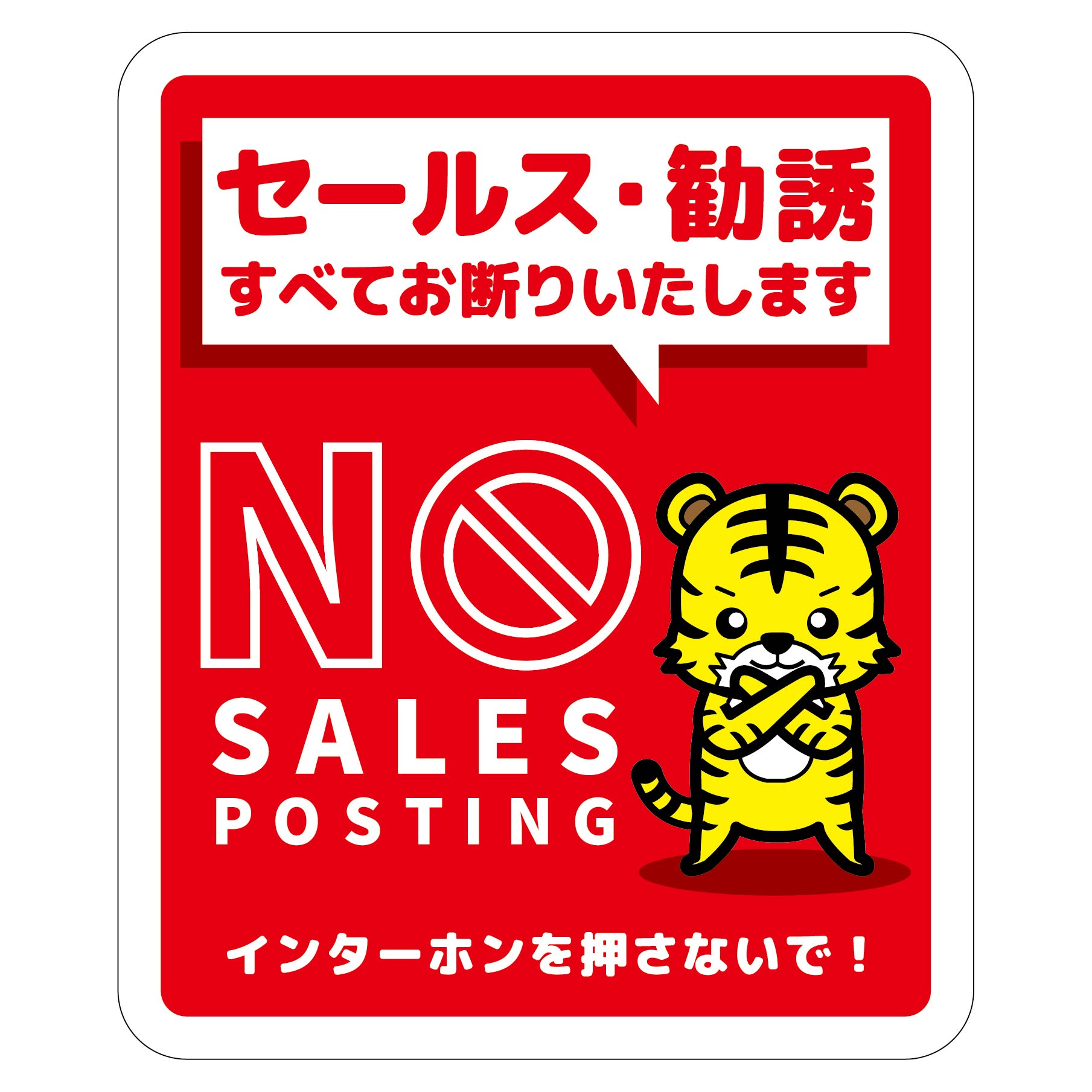 セールスお断り標識、しつこい訪問販売や勧誘などの迷惑なセールスをお断りしてくれる標識です。赤ちゃんやペットがいて、インターホンを鳴らされたくない場合にもオススメです。訪問販売の相談は、電話勧誘販売と並んで最も多い現状にあり、多発する訪問販売被害を防止するのに効果的です。 景観を損ねることなく、様々な箇所に取り付けて注意を促せます。ステッカータイプ、マグネットタイプ、塩ビタイプなど、多種素材デザインでバリエーション豊富です。