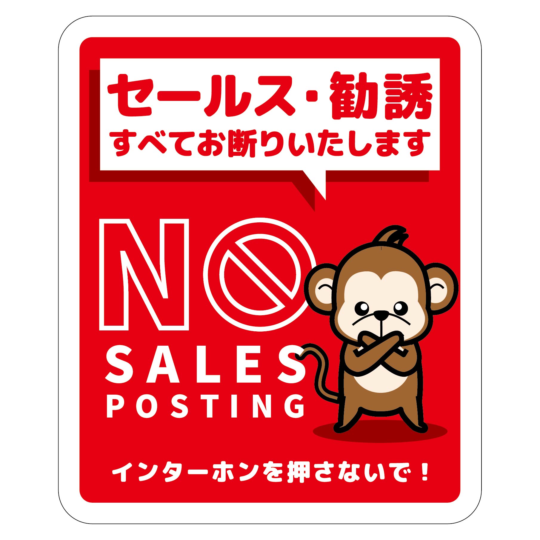セールスお断り標識、しつこい訪問販売や勧誘などの迷惑なセールスをお断りしてくれる標識です。赤ちゃんやペットがいて、インターホンを鳴らされたくない場合にもオススメです。訪問販売の相談は、電話勧誘販売と並んで最も多い現状にあり、多発する訪問販売被害を防止するのに効果的です。 景観を損ねることなく、様々な箇所に取り付けて注意を促せます。ステッカータイプ、マグネットタイプ、塩ビタイプなど、多種素材デザインでバリエーション豊富です。