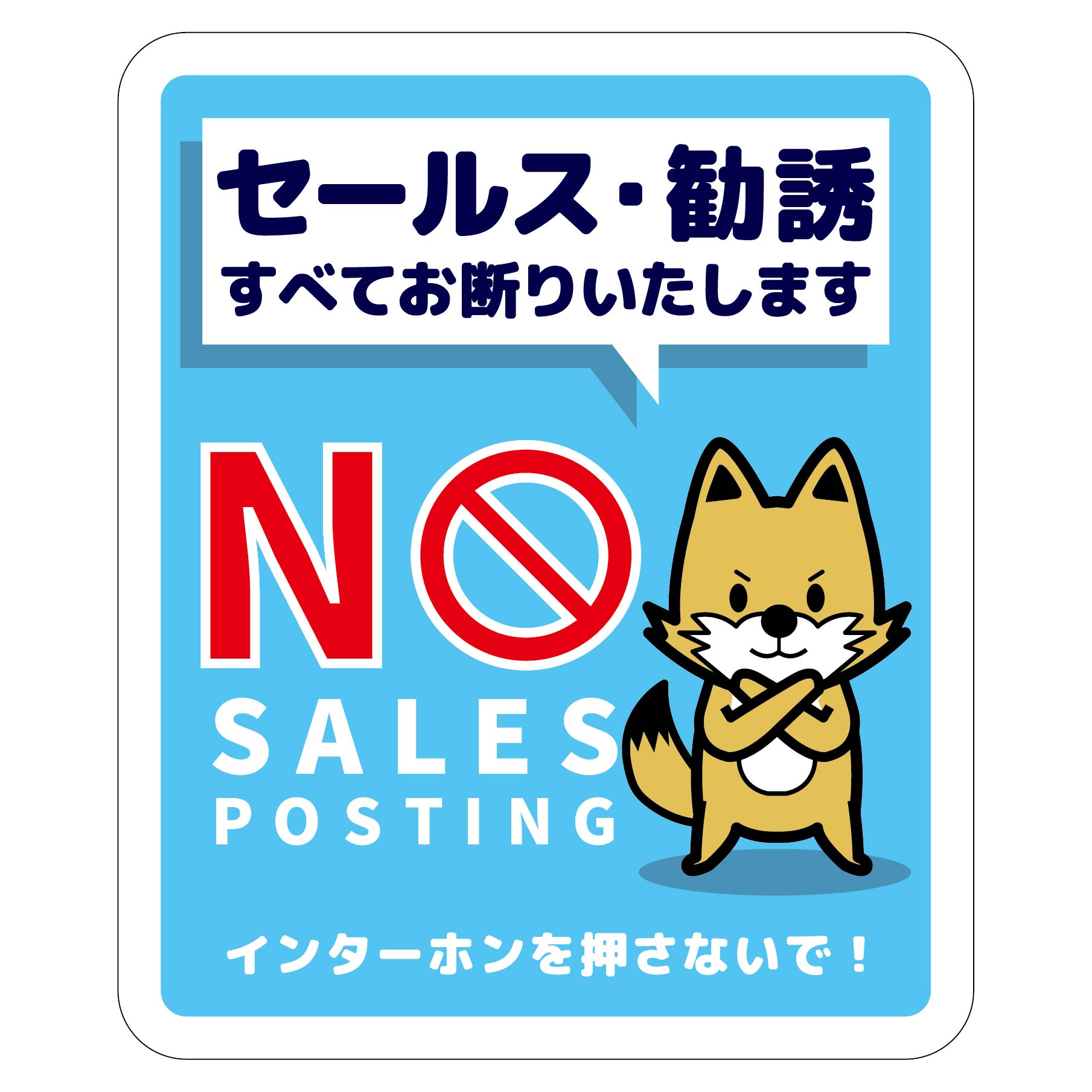 セールスお断り標識、しつこい訪問販売や勧誘などの迷惑なセールスをお断りしてくれる標識です。赤ちゃんやペットがいて、インターホンを鳴らされたくない場合にもオススメです。訪問販売の相談は、電話勧誘販売と並んで最も多い現状にあり、多発する訪問販売被害を防止するのに効果的です。 景観を損ねることなく、様々な箇所に取り付けて注意を促せます。ステッカータイプ、マグネットタイプ、塩ビタイプなど、多種素材デザインでバリエーション豊富です。