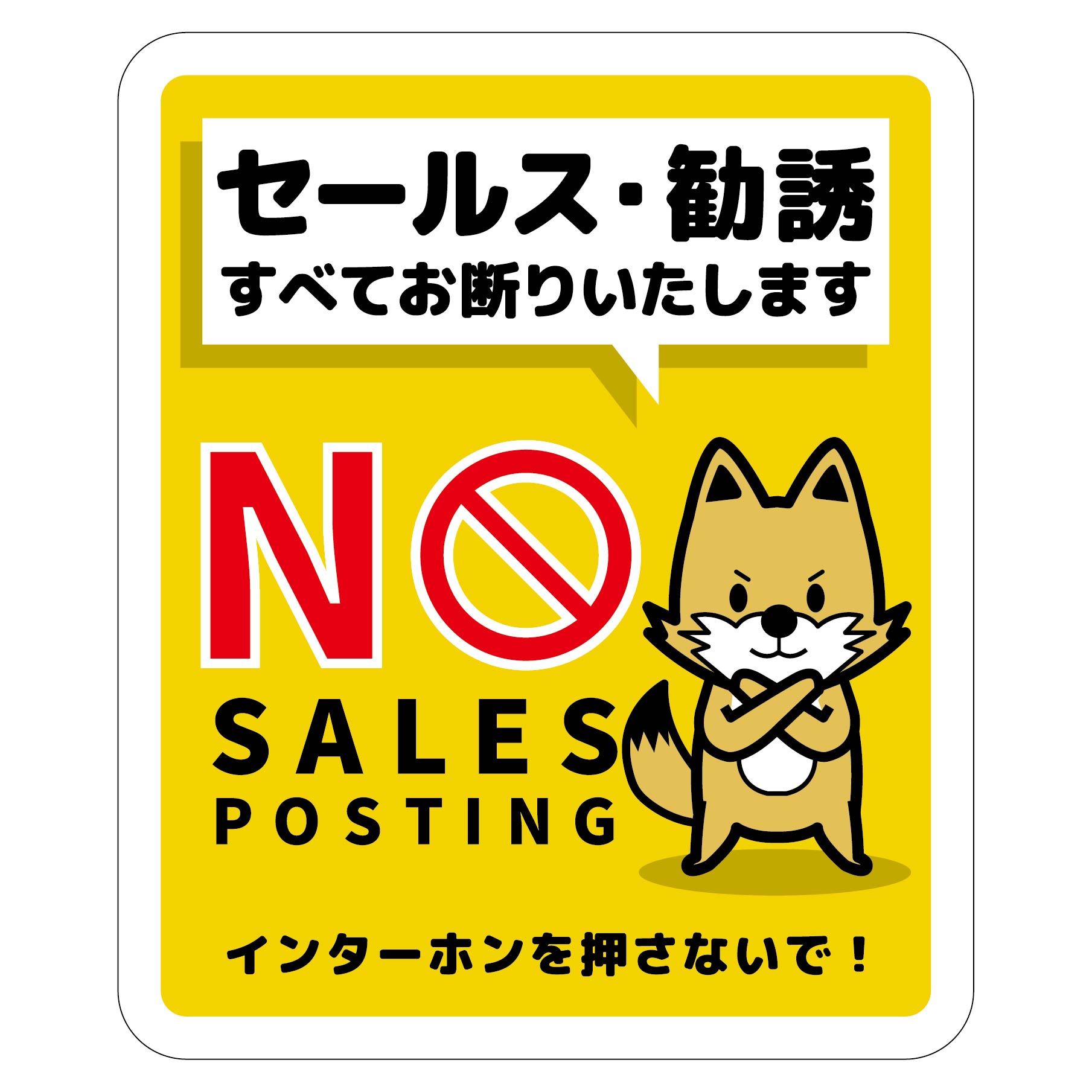 セールスお断り標識、しつこい訪問販売や勧誘などの迷惑なセールスをお断りしてくれる標識です。赤ちゃんやペットがいて、インターホンを鳴らされたくない場合にもオススメです。訪問販売の相談は、電話勧誘販売と並んで最も多い現状にあり、多発する訪問販売被害を防止するのに効果的です。 景観を損ねることなく、様々な箇所に取り付けて注意を促せます。ステッカータイプ、マグネットタイプ、塩ビタイプなど、多種素材デザインでバリエーション豊富です。