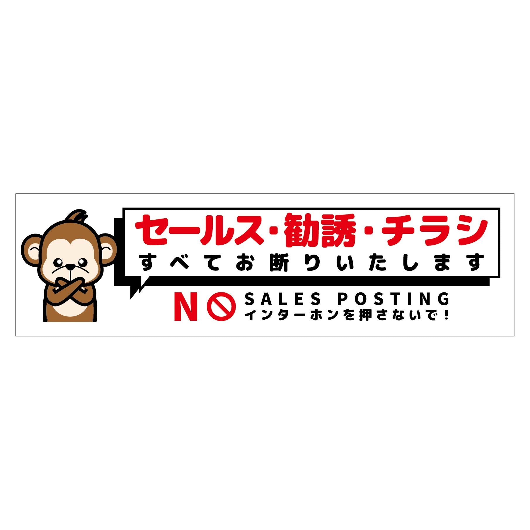 セールスお断り標識、しつこい訪問販売や勧誘などの迷惑なセールスをお断りしてくれる標識です。赤ちゃんやペットがいて、インターホンを鳴らされたくない場合にもオススメです。訪問販売の相談は、電話勧誘販売と並んで最も多い現状にあり、多発する訪問販売被害を防止するのに効果的です。 景観を損ねることなく、様々な箇所に取り付けて注意を促せます。ステッカータイプ、マグネットタイプ、塩ビタイプなど、多種素材デザインでバリエーション豊富です。