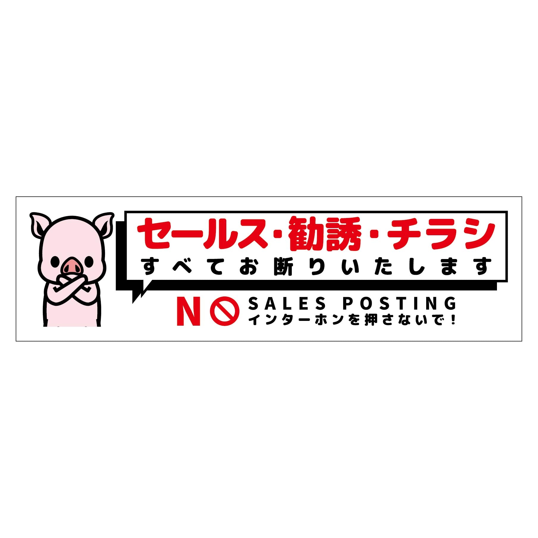 セールスお断り標識、しつこい訪問販売や勧誘などの迷惑なセールスをお断りしてくれる標識です。赤ちゃんやペットがいて、インターホンを鳴らされたくない場合にもオススメです。訪問販売の相談は、電話勧誘販売と並んで最も多い現状にあり、多発する訪問販売被害を防止するのに効果的です。 景観を損ねることなく、様々な箇所に取り付けて注意を促せます。ステッカータイプ、マグネットタイプ、塩ビタイプなど、多種素材デザインでバリエーション豊富です。