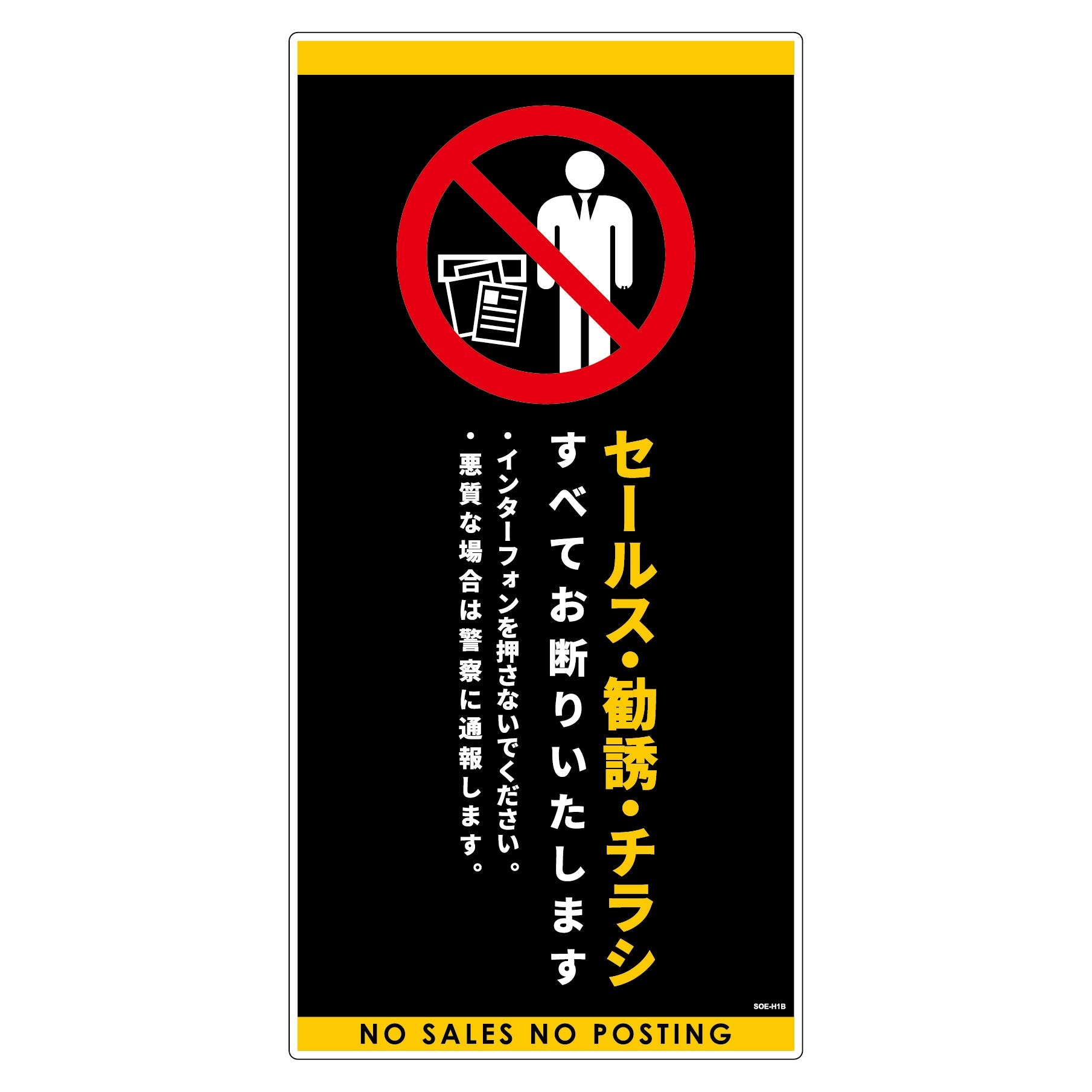 セールスお断り標識タテ塩ビ黒 SOE-H1B