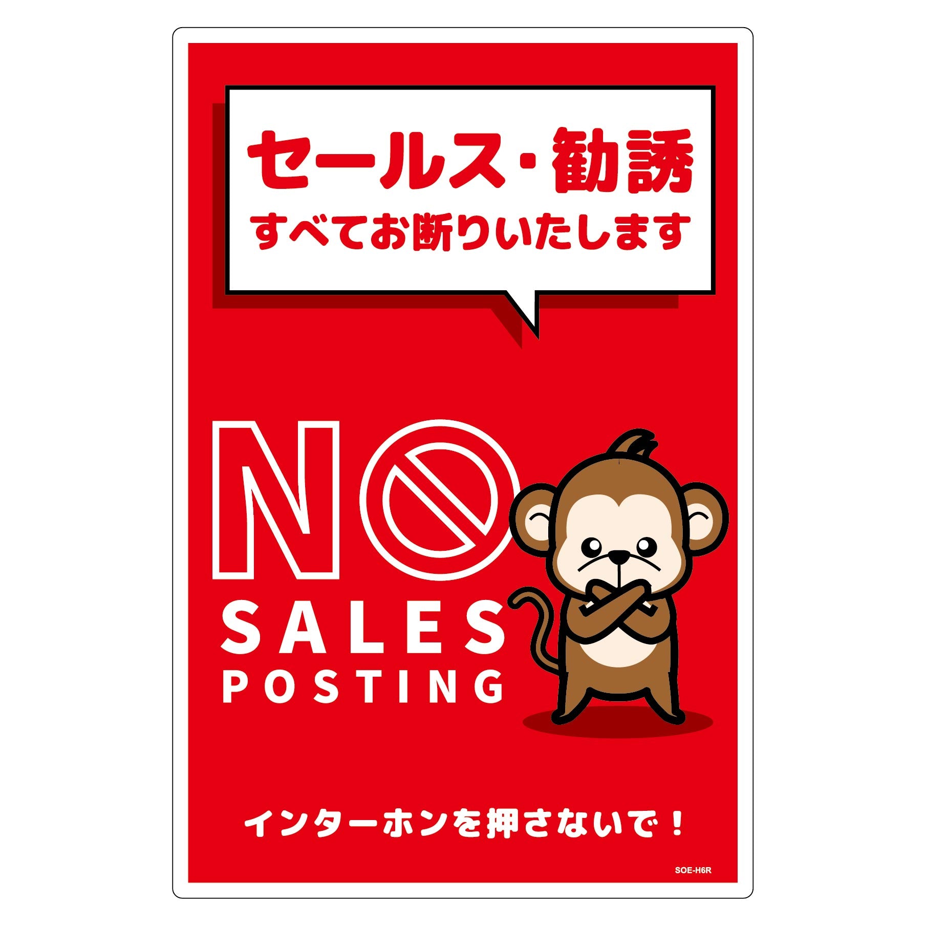 セールスお断り標識タテ塩ビ赤 SOE-H6R