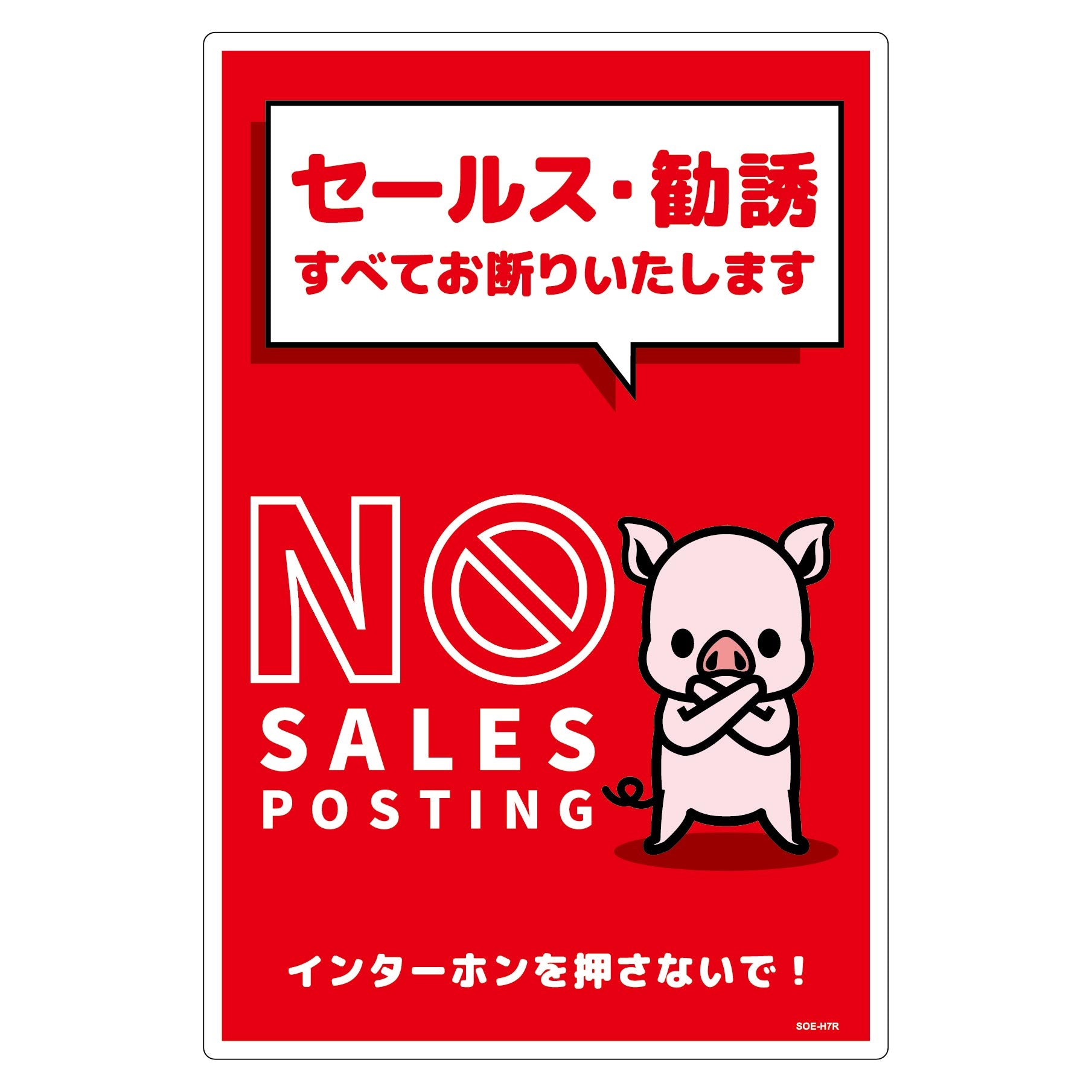 セールスお断り標識タテ塩ビ赤 SOE-H7R