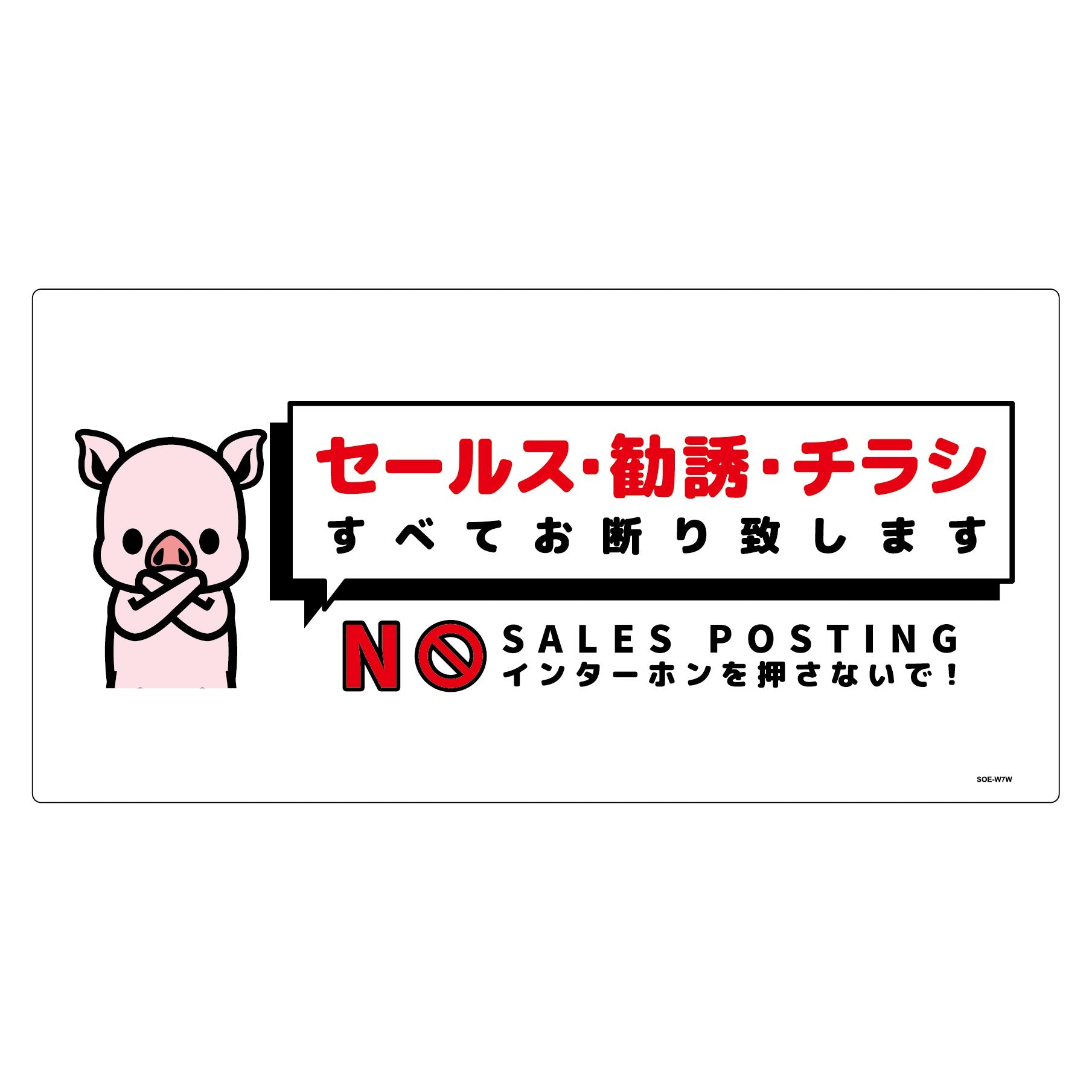セールスお断り標識ヨコ塩ビ白 SOE-W7W