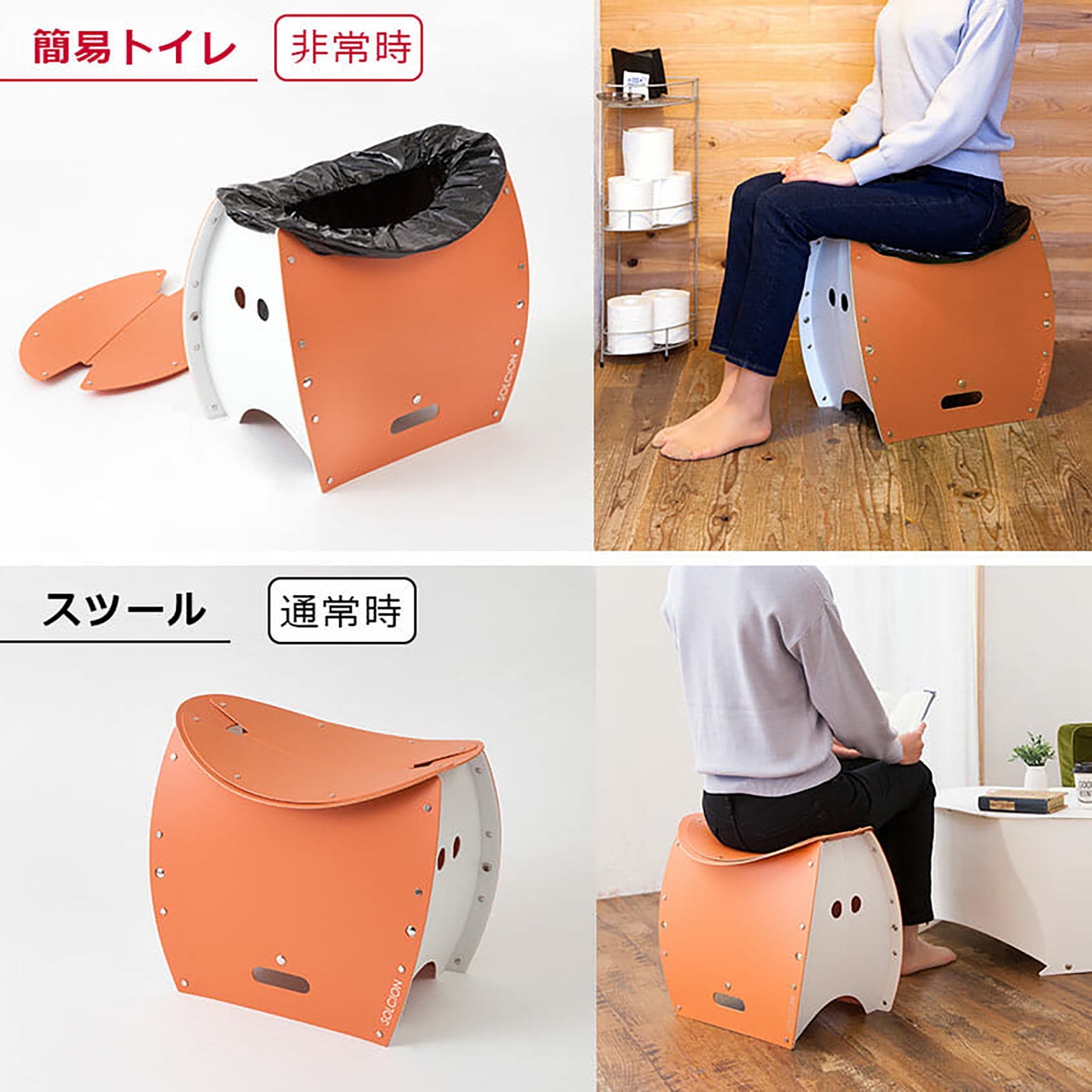 避難所やキャンプなどトイレがない場所でも普段の生活に近いスタイルで使用でき、簡易トイレ使用時のストレスを軽減してくれます。