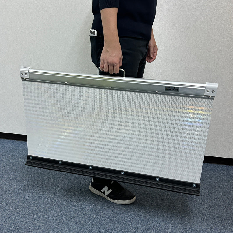 看板上部の指はさみにご注意ください。 側部は板の断面がそのままの状態になっておりますのでご注意ください。 安全のため、看板は折りたたんだ状態で持ち運んでください。 開閉時に軋み音がしますが商品不良ではございません。 反射シート部分には生産の仕様上、必ず継ぎ目の線が入ります。 予めご了承ください。 |