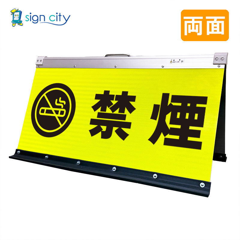 高輝度反射 折りたたみ看板 大 (450×900) 黄 両面 016Y90W_禁煙