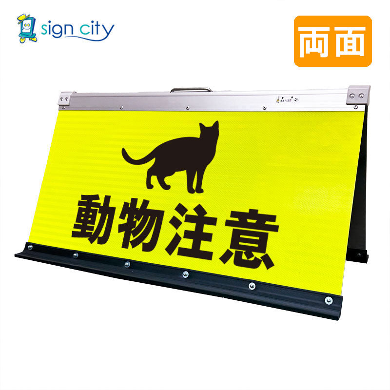 高輝度反射 折りたたみ看板 大 (450×900) 黄 両面 032Y90W_動物注意