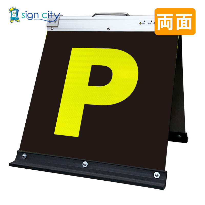 高輝度反射 折りたたみ看板 小 (450×450) 黄 両面 002Y45W_駐車場マーク黄文字