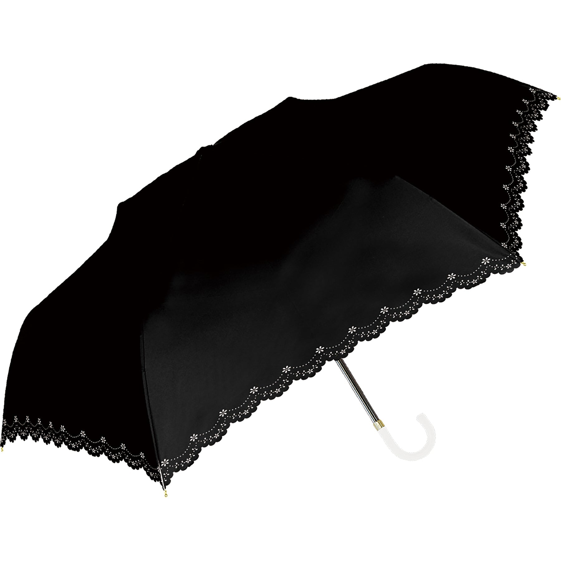 日傘 UVフラワーヒートカット折 ブラック