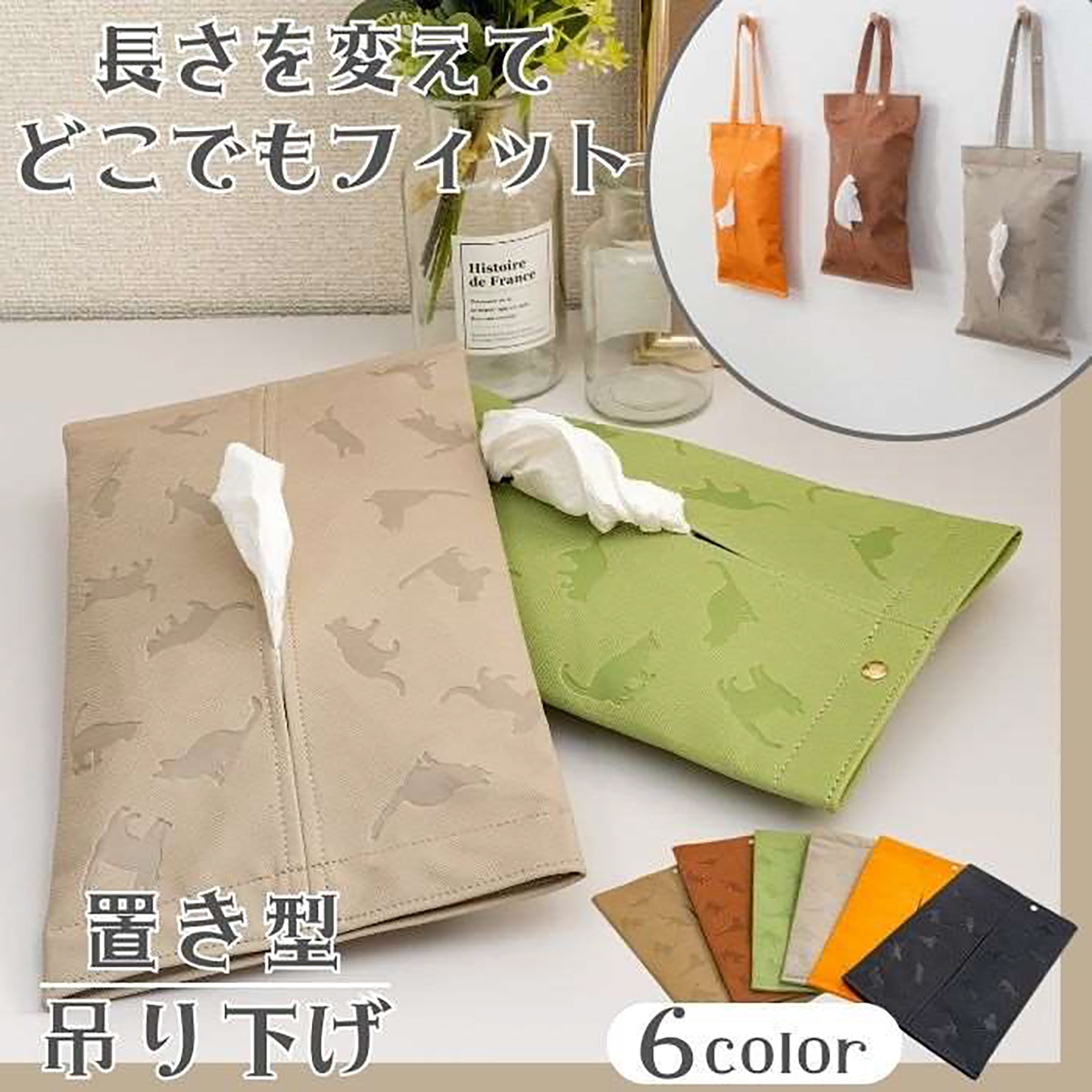 車・自宅 場所を選ばず使える大人可愛い猫シルエットの2wayティシュケースです。