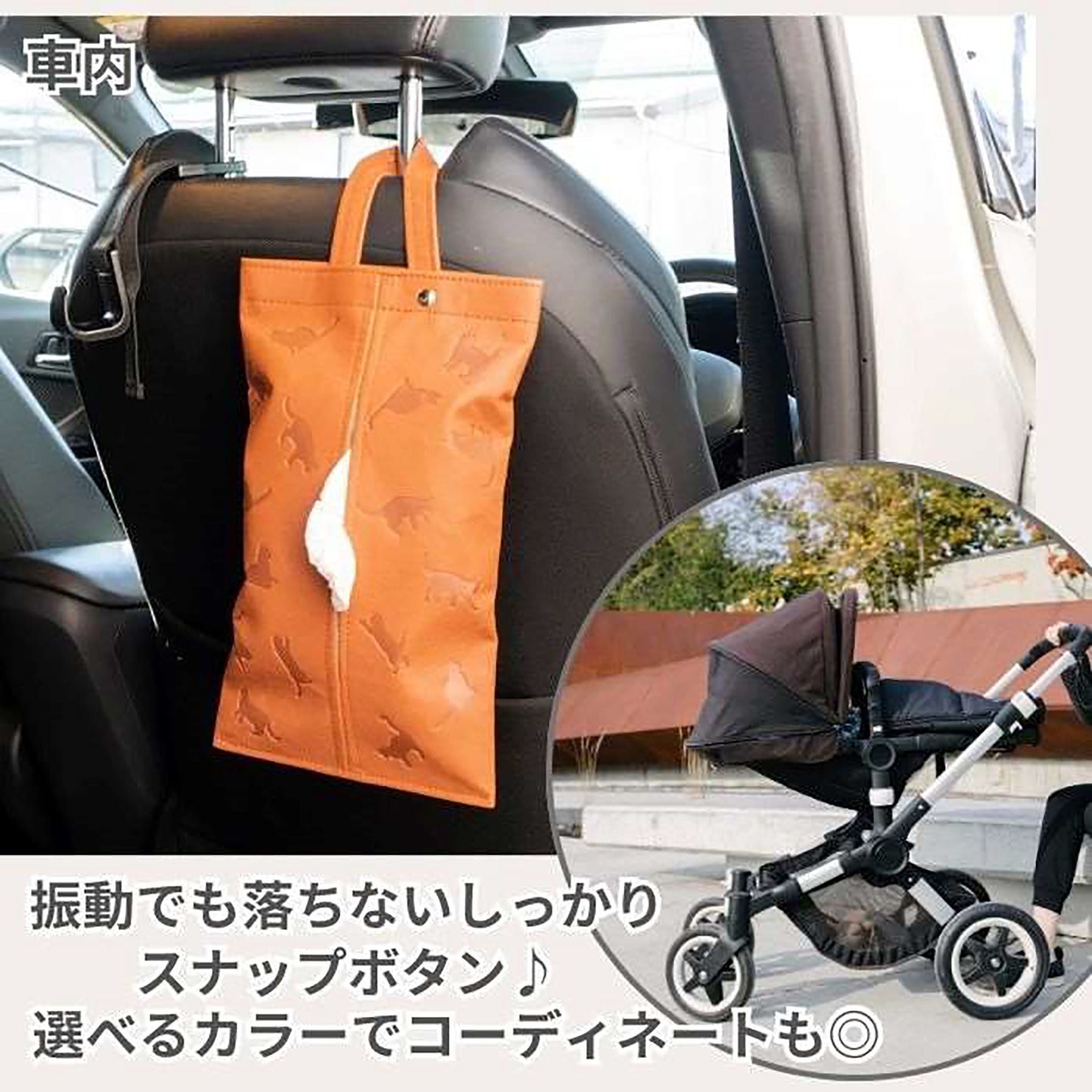 車・自宅 場所を選ばず使える大人可愛い猫シルエットの2wayティシュケースです。