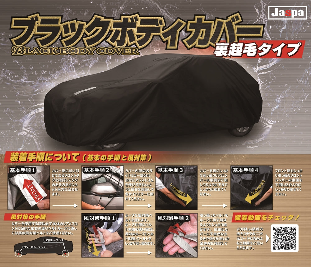 目立たない落ち着いたブラックカラーのボディカバーです。