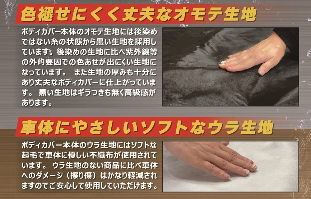 裏生地は車体に傷がつきにくい不織布を使用しています。