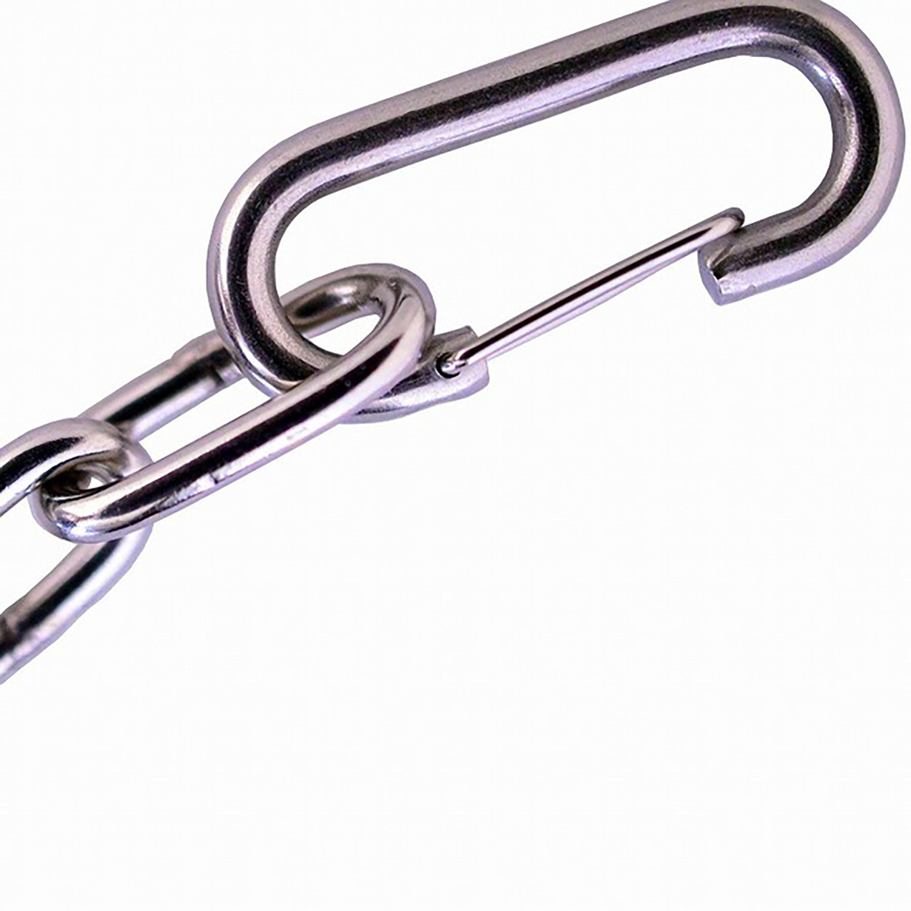 錆に強いステンレス製チェーン(全長30cm)の両端に、使用荷重12kgのスプリングフックが付いています。