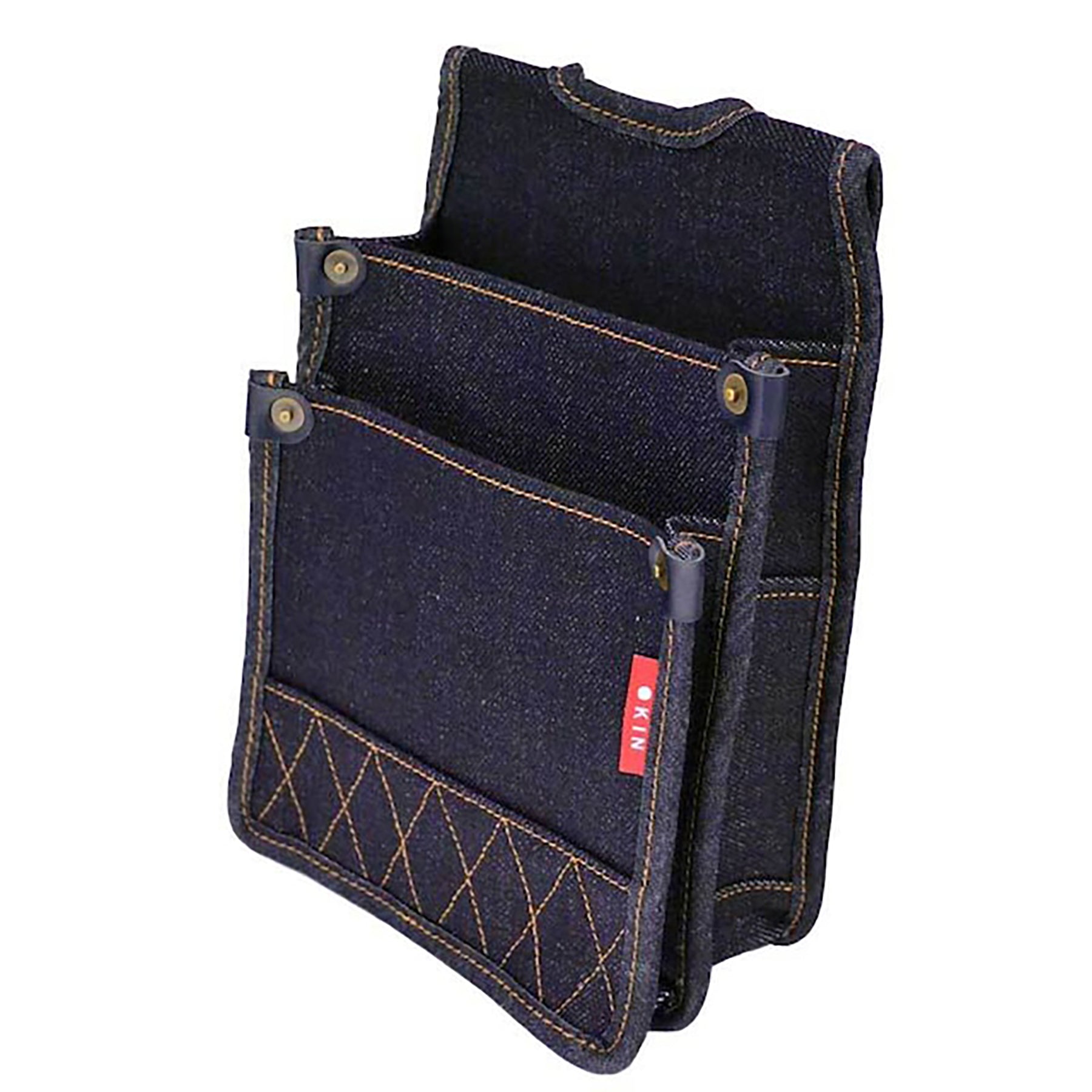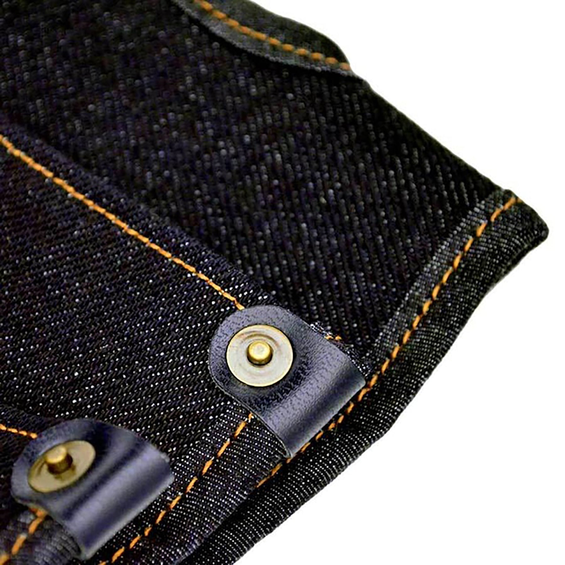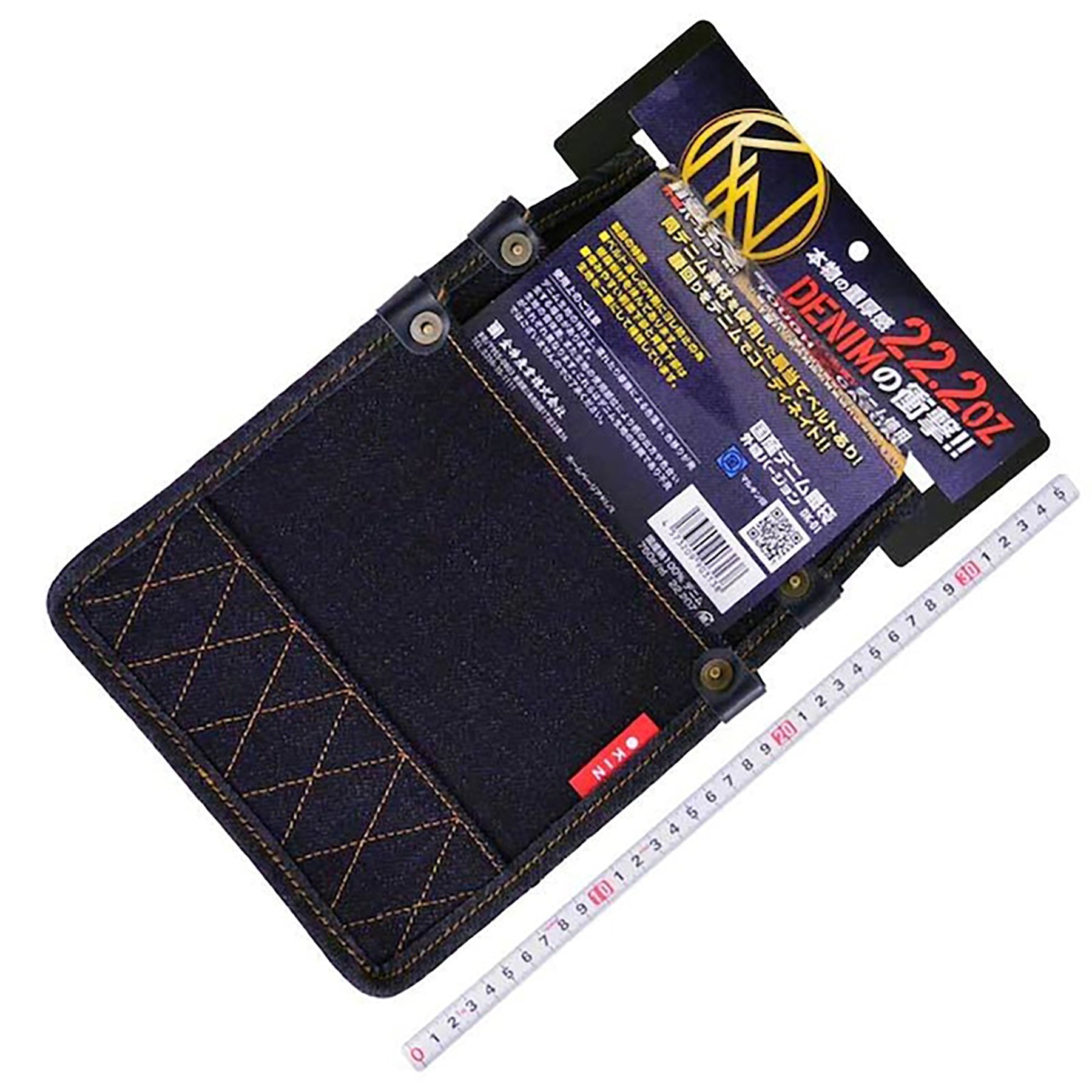 2段タイプの国産セルビッジ(赤耳)で重厚感ある22.2オンスのデニム生地を使用し、しっかりとした厚みのある「こだわりの腰袋」となっています。