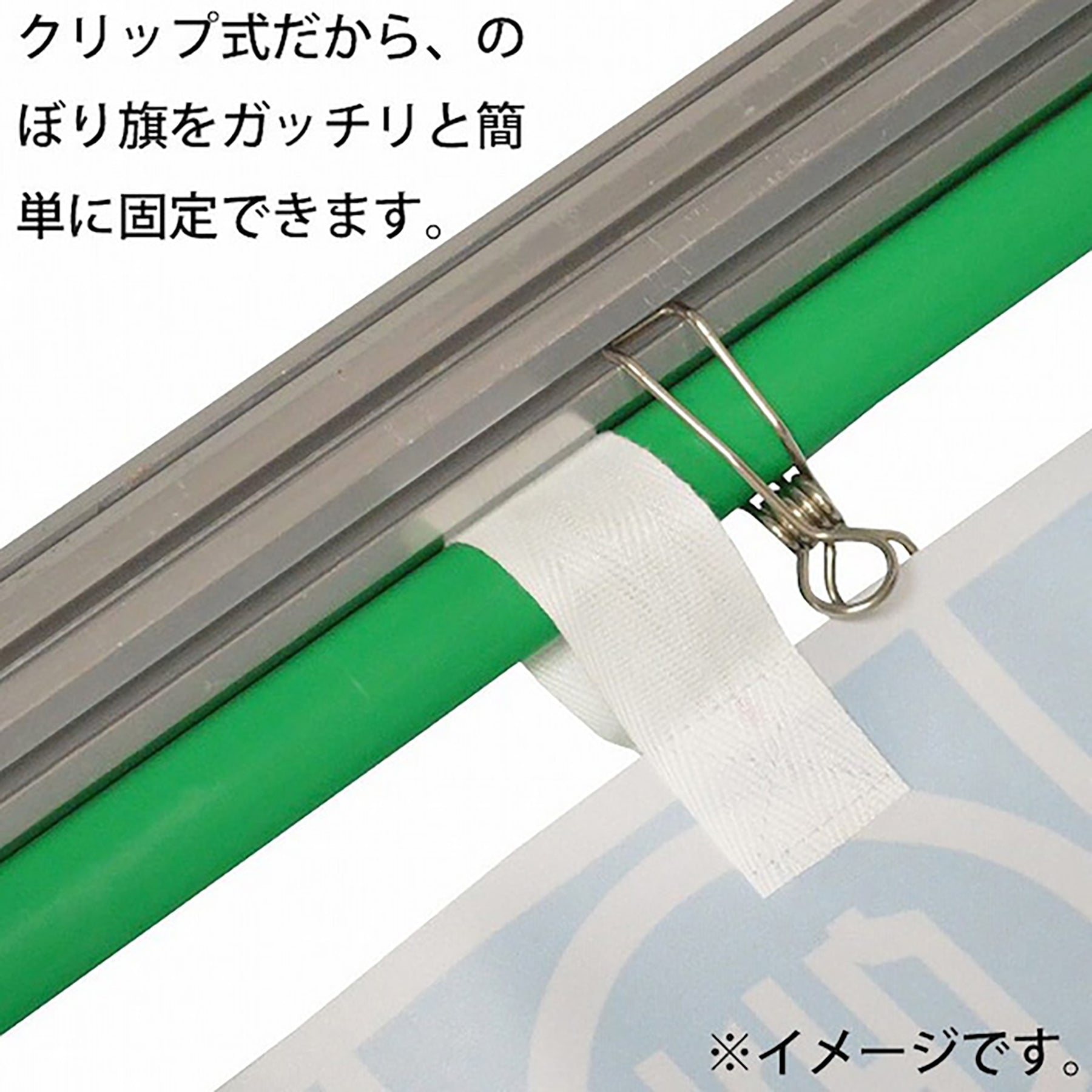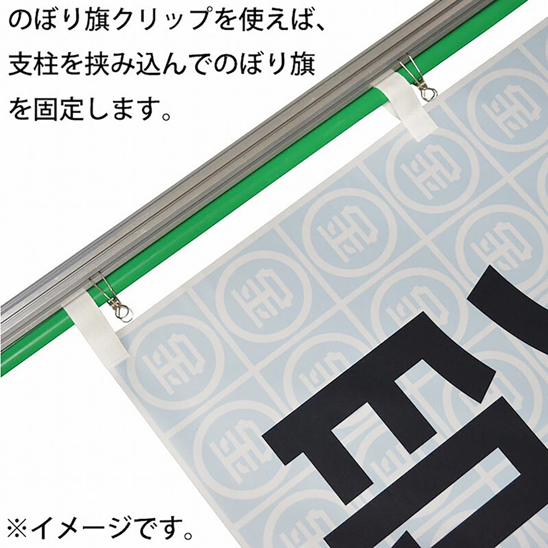 展示会などで使われている支柱に、のぼり旗(直径22mm)を挟んで固定する為のクリップです。