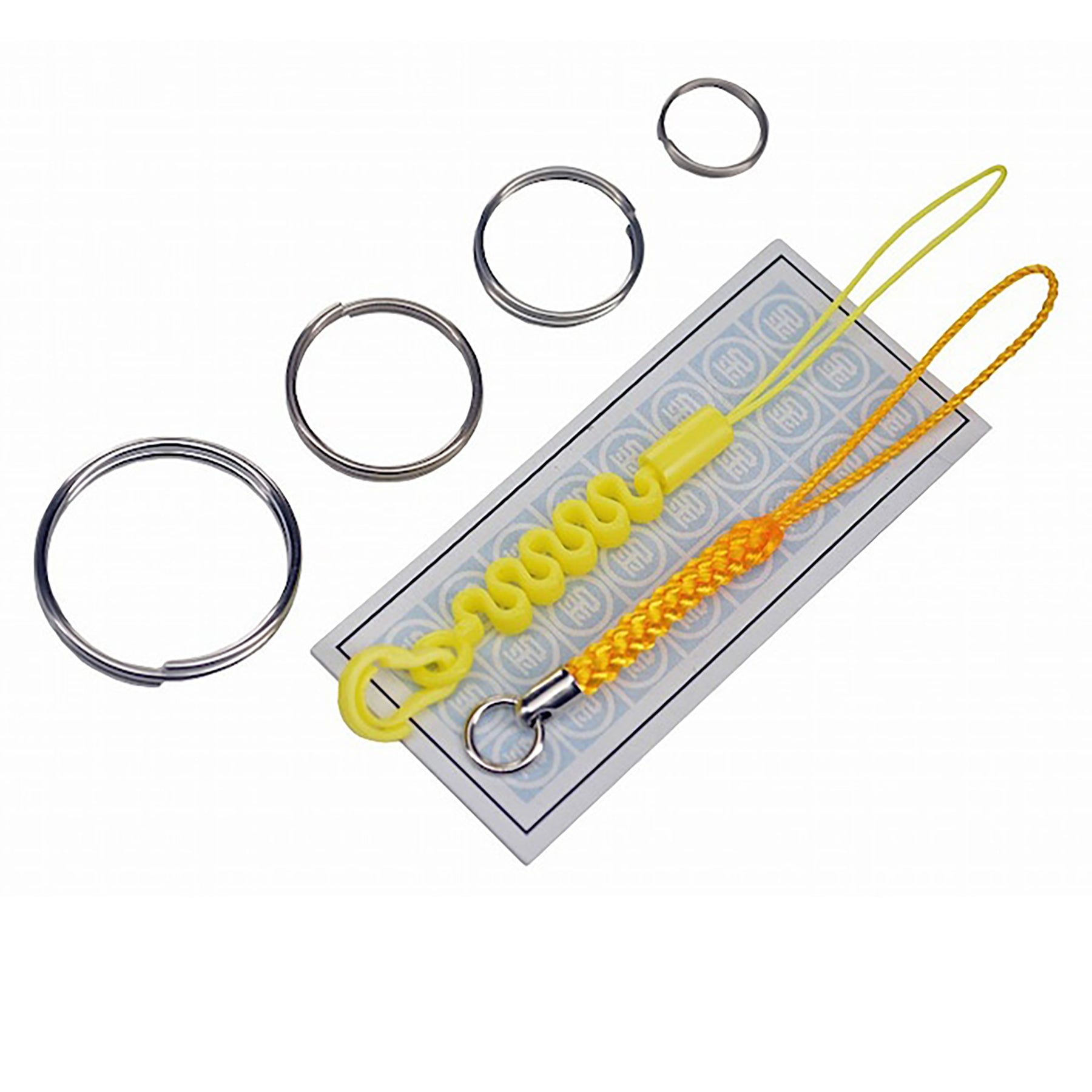 シンプルなナイロンストラップ、おしゃれなシリコンストラップの2種類と、大小4種ステンレスリングがセットになっています。