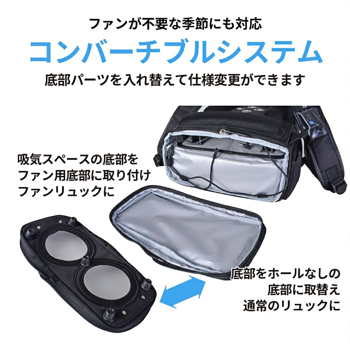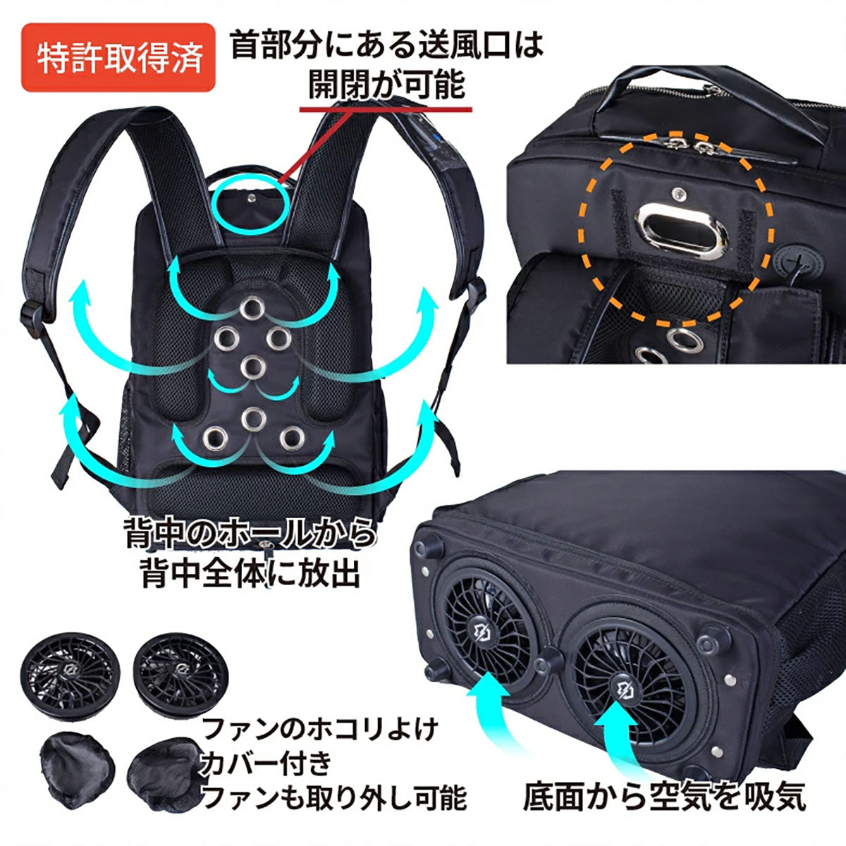 Robert Klein ファン付ビジネスリュックS ブラック 8712は、特許を取得したファンを取り付けられる新しいタイプのリュックです。