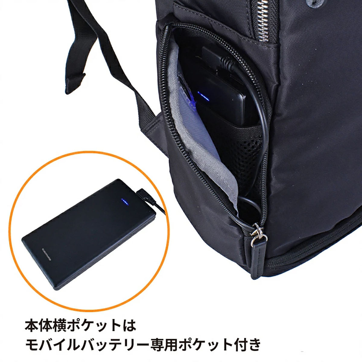 本体横ポケットは、モバイルバッテリー(10000mAhが付属)専用ポケットとなります。