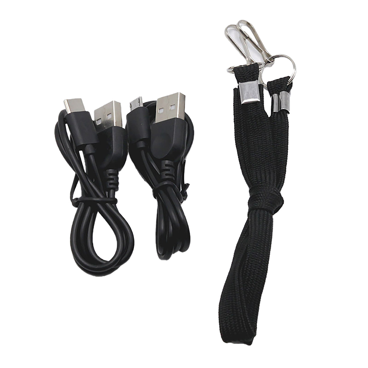 取扱説明書、本体充電用USBケーブル(TypeC)、外部給電用USBケーブル(MicroUSB)、専用肩かけストラップ |