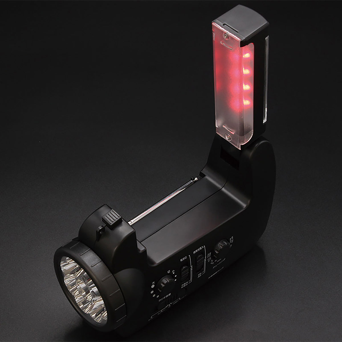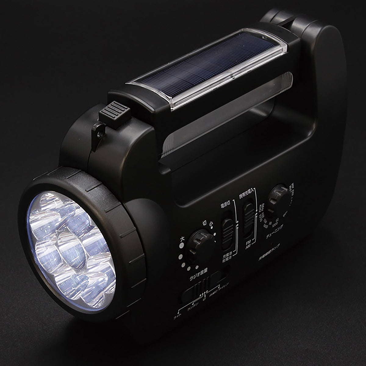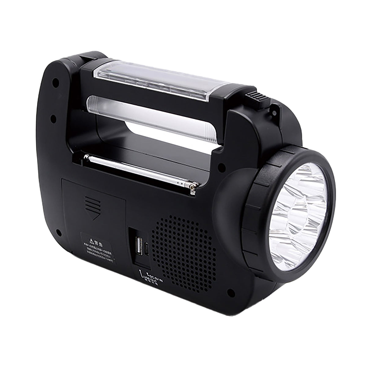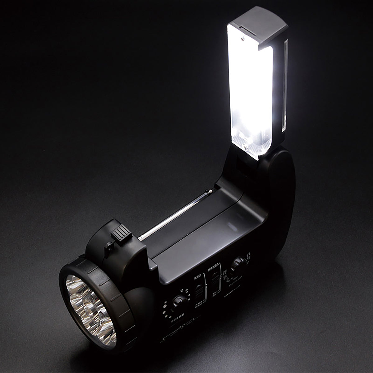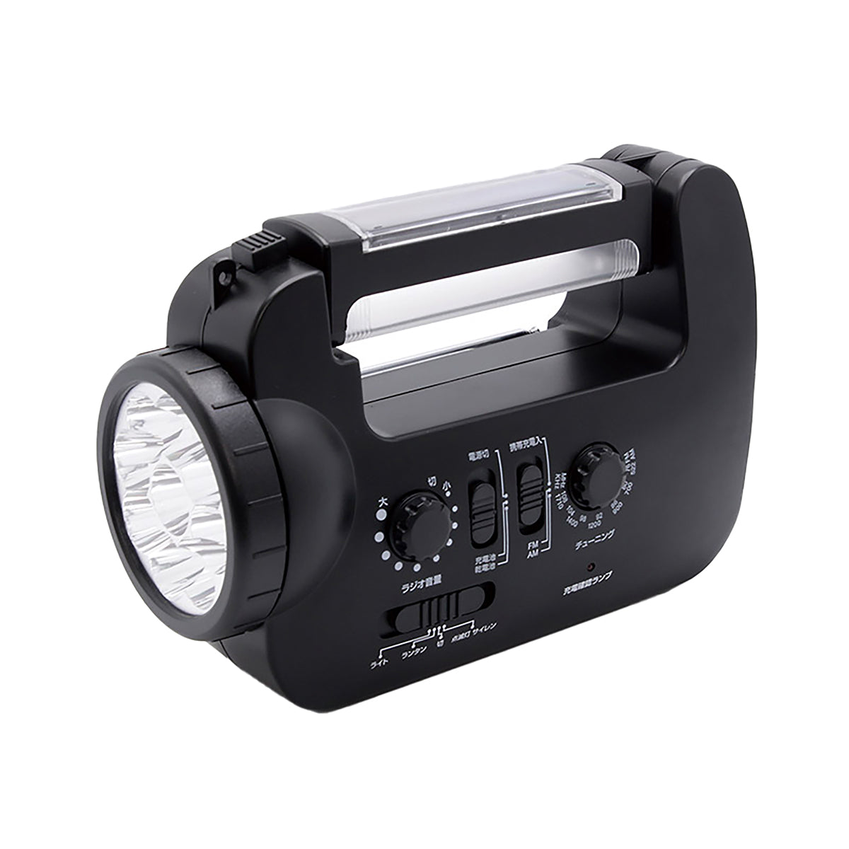①LED読書灯②LEDライト③AM/FMラジオ(ワイドFM対応)④スマホ充電⑤サイレン |
