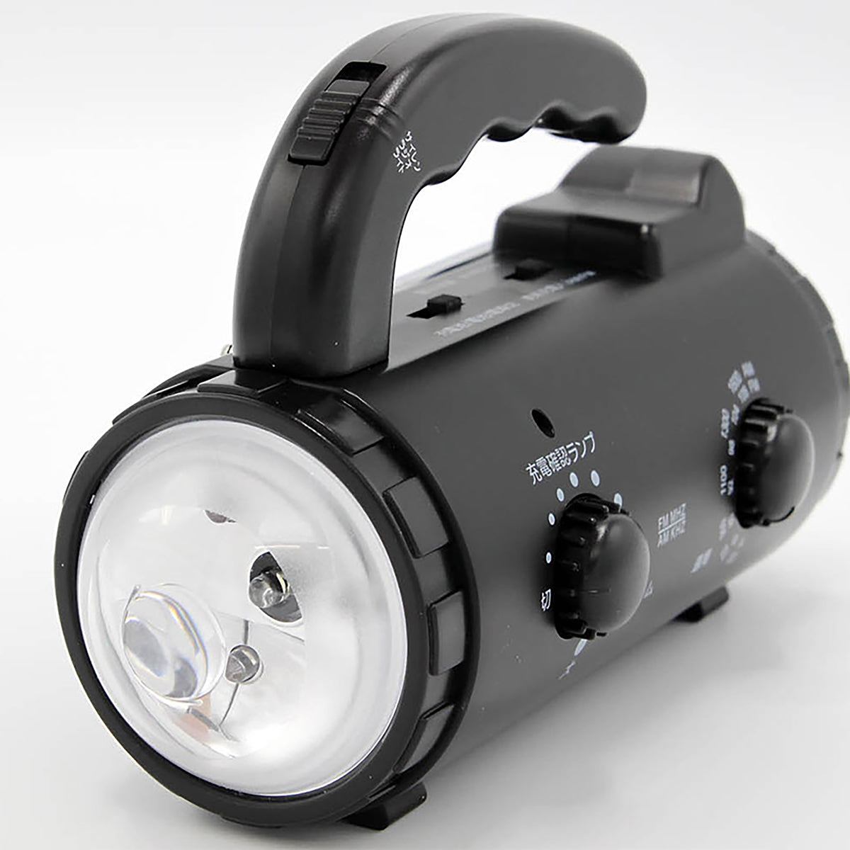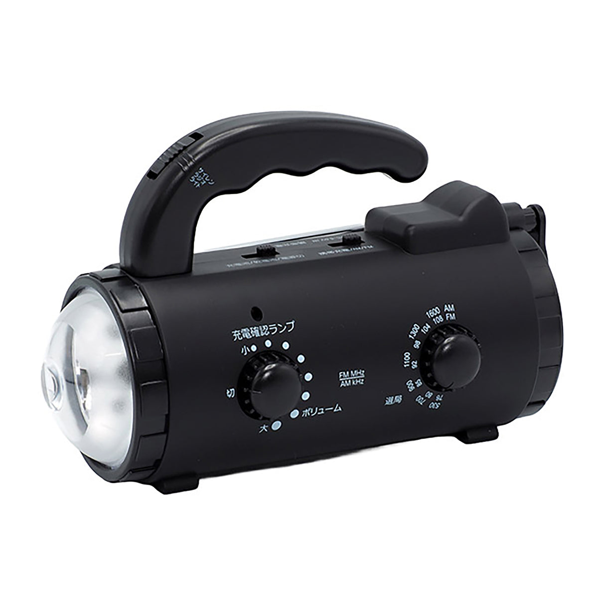 手回し充電ラジオライトは、ダイナモ・乾電池・USB、3タイプ充電の防災ラジオライトです。