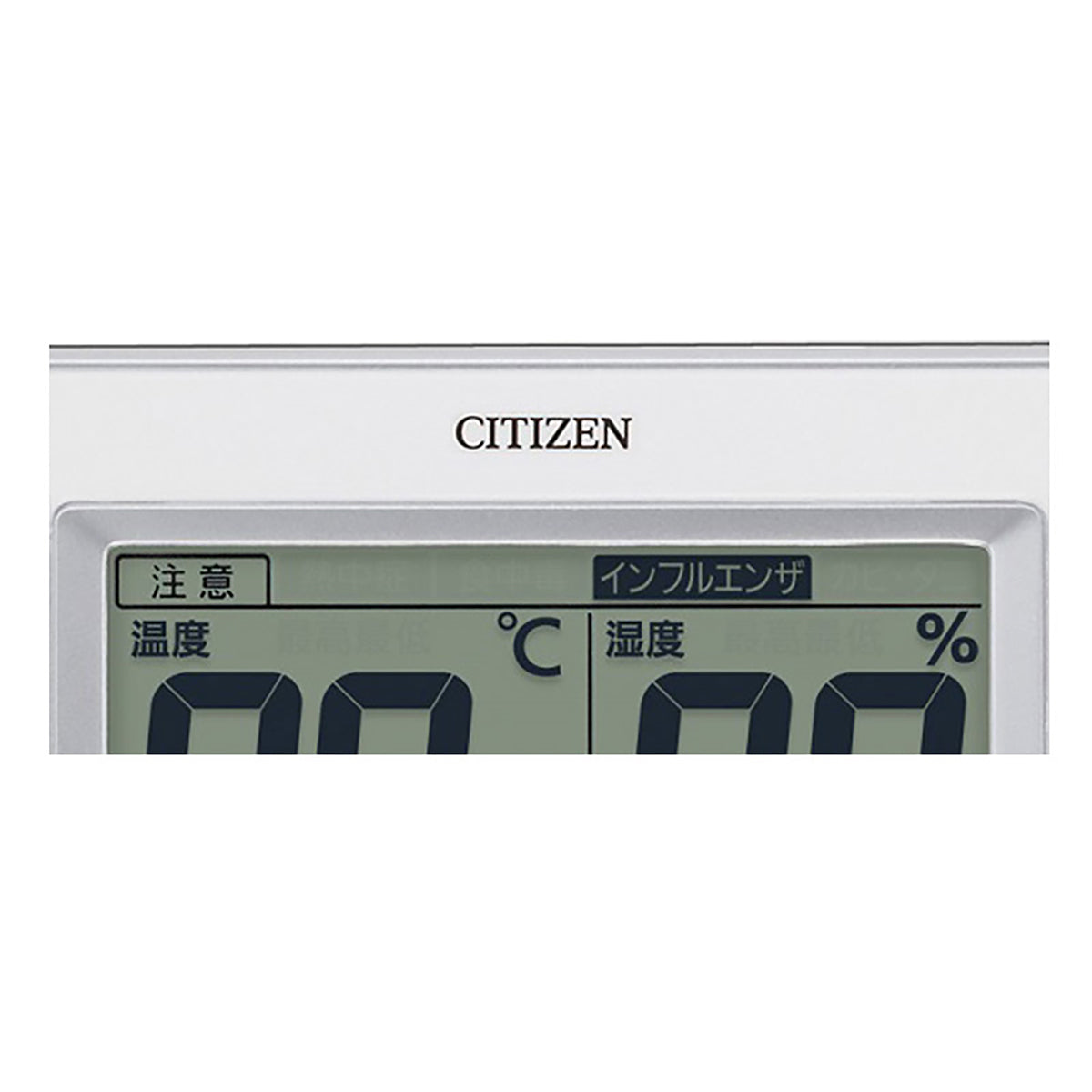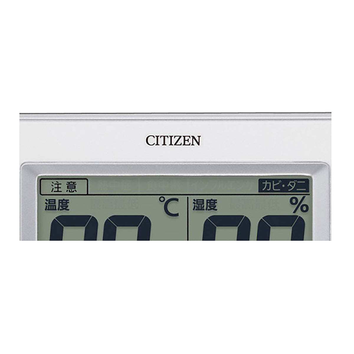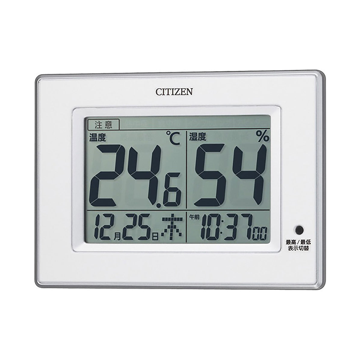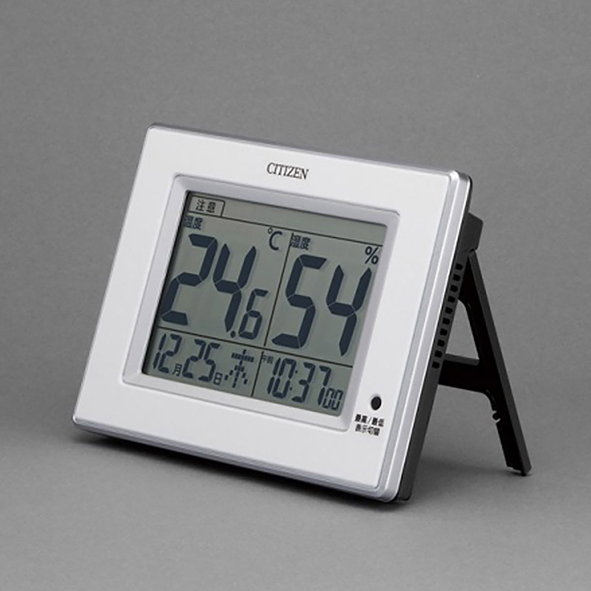 シチズン 温湿度計は、環境目安で症状などへの注意表示がでる温度計です。