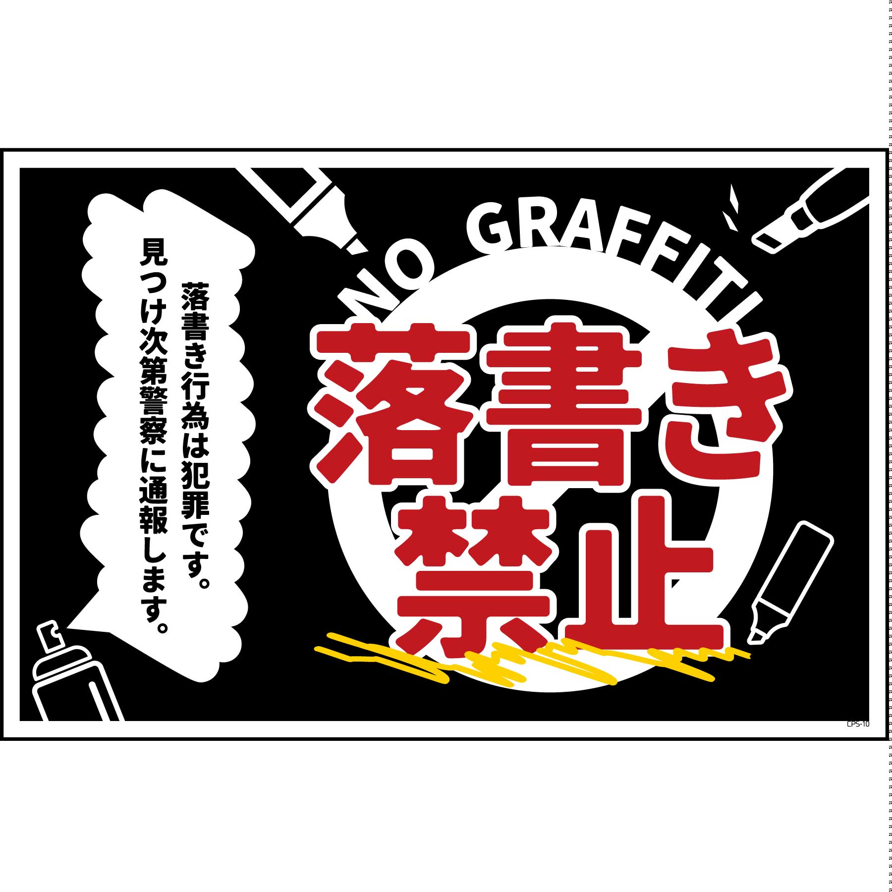 防犯標識 CPS-W10_450×300 落書き禁止 黒