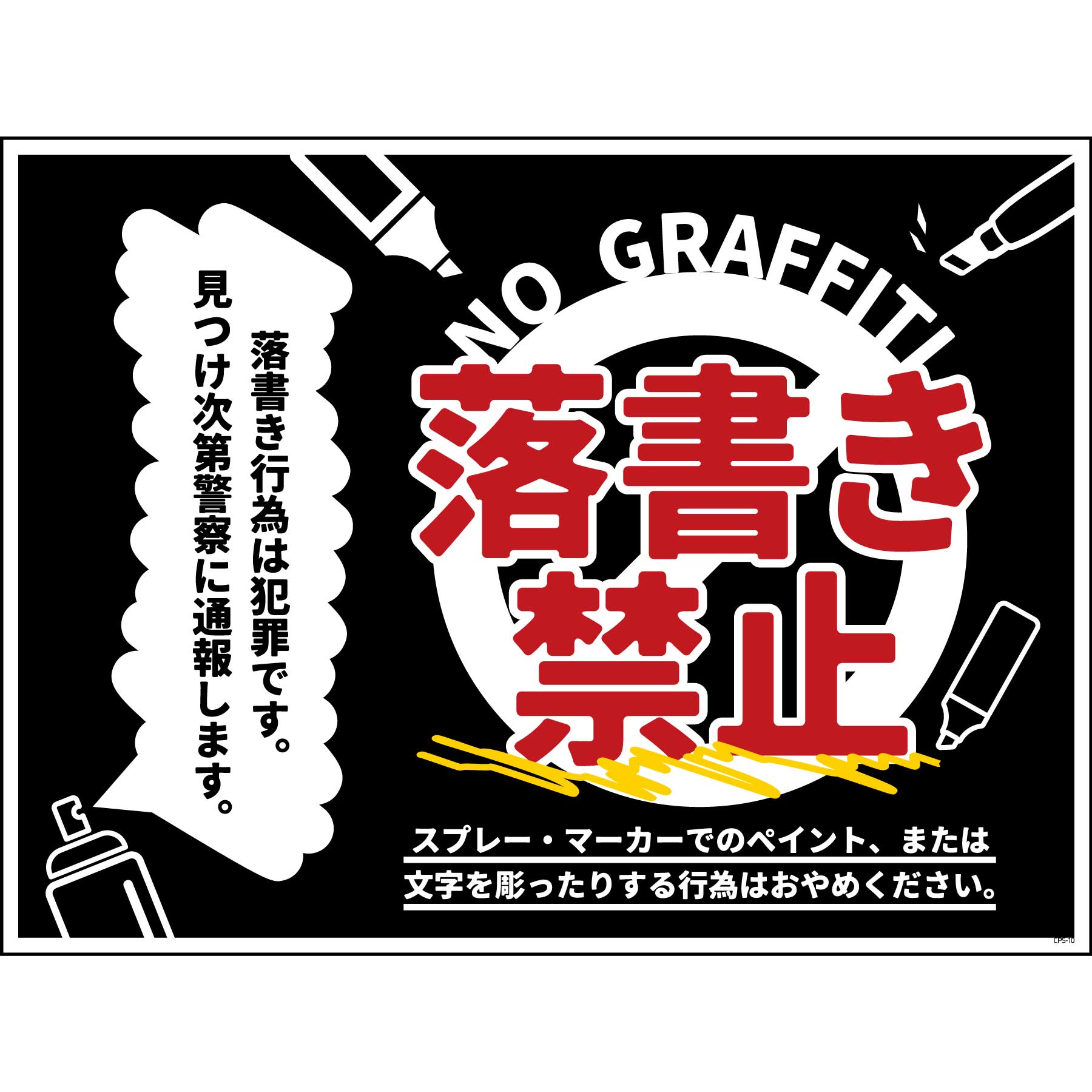 防犯標識 CPS-W10_600×450 落書き禁止 黒