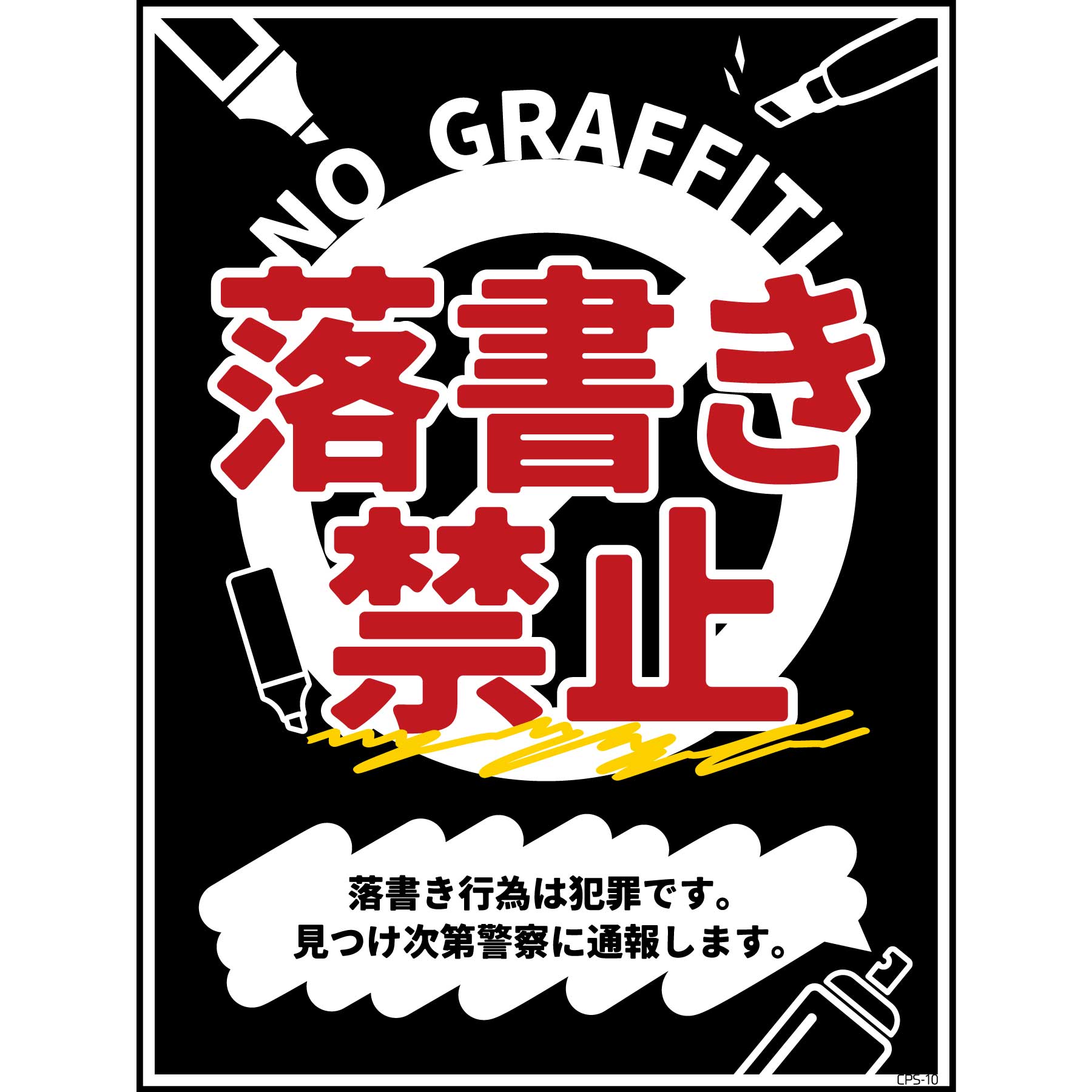 防犯標識ステッカー CPS-H10S_225×300 落書き禁止 黒