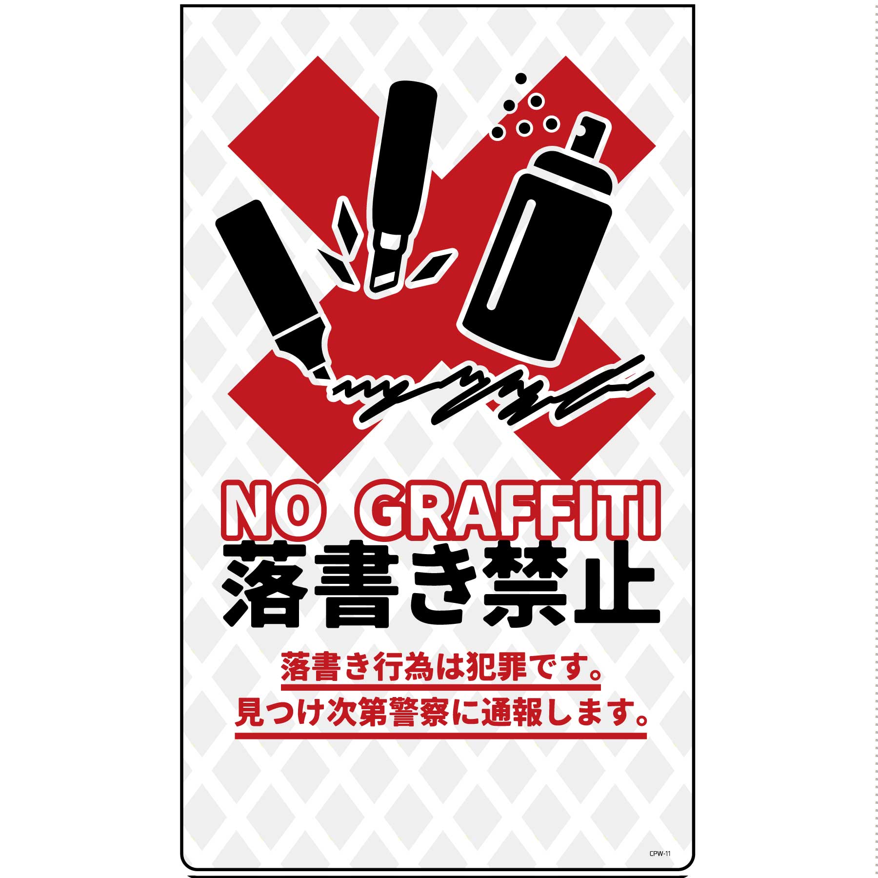 防犯標識 ニューコーンサインホワイト CPW-11 落書き禁止