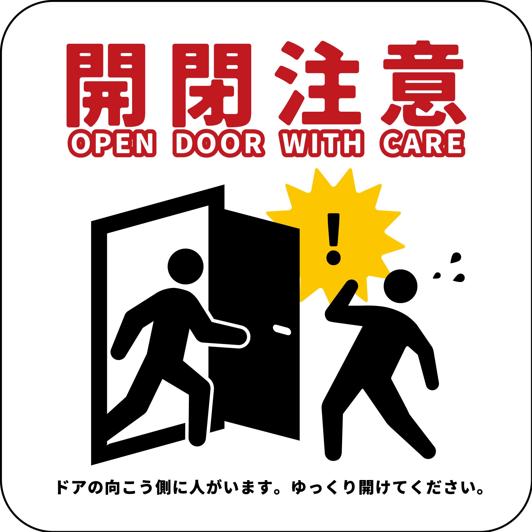 扉の開閉の際に、向こう側を通行中の方にぶつからないように注意を促せます。何気なく開けてしまう扉にぶつかる事故防止効果が見込めます。