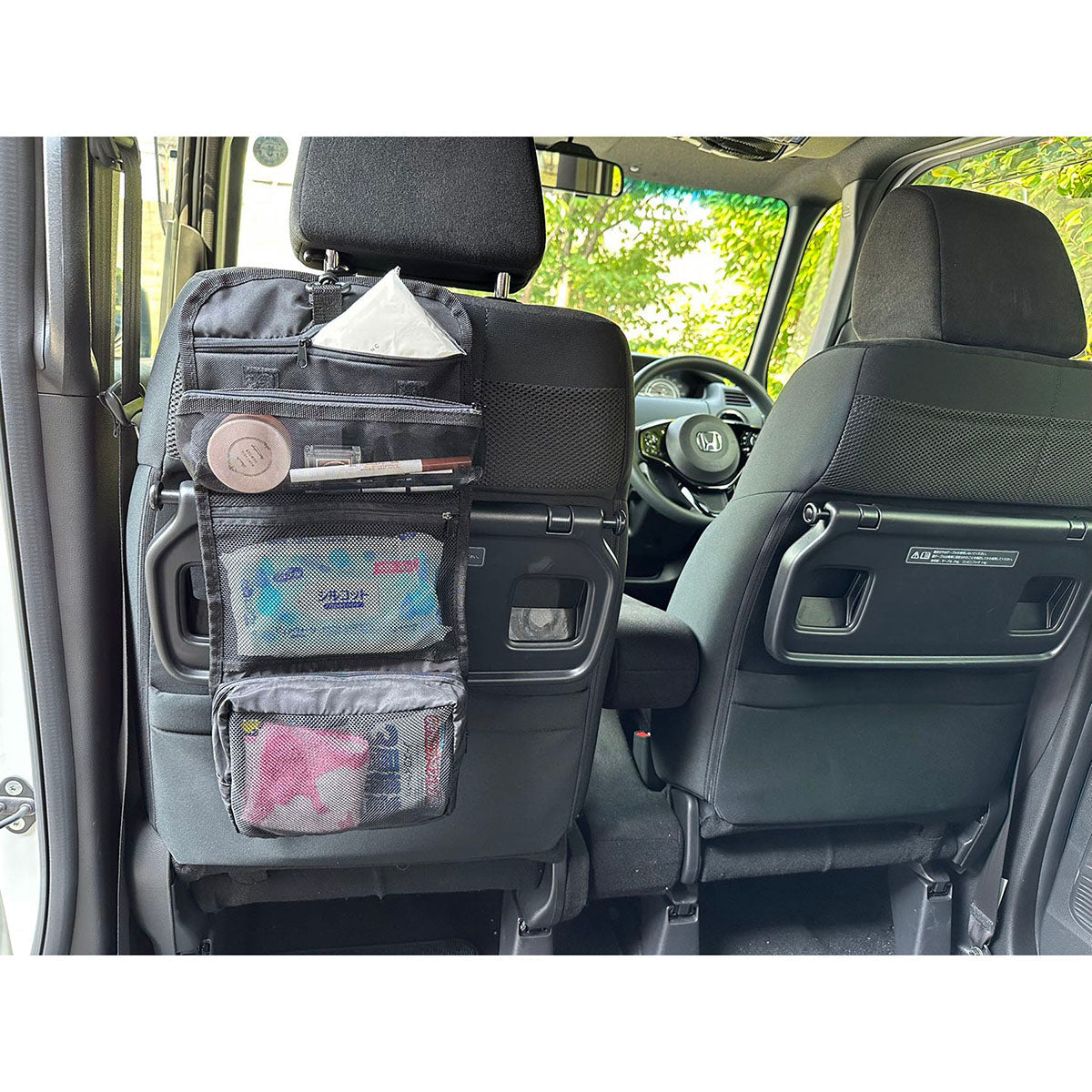 上部のフックでお車のヘッドレストや様々な箇所に引っ掛けて使用が可能です。