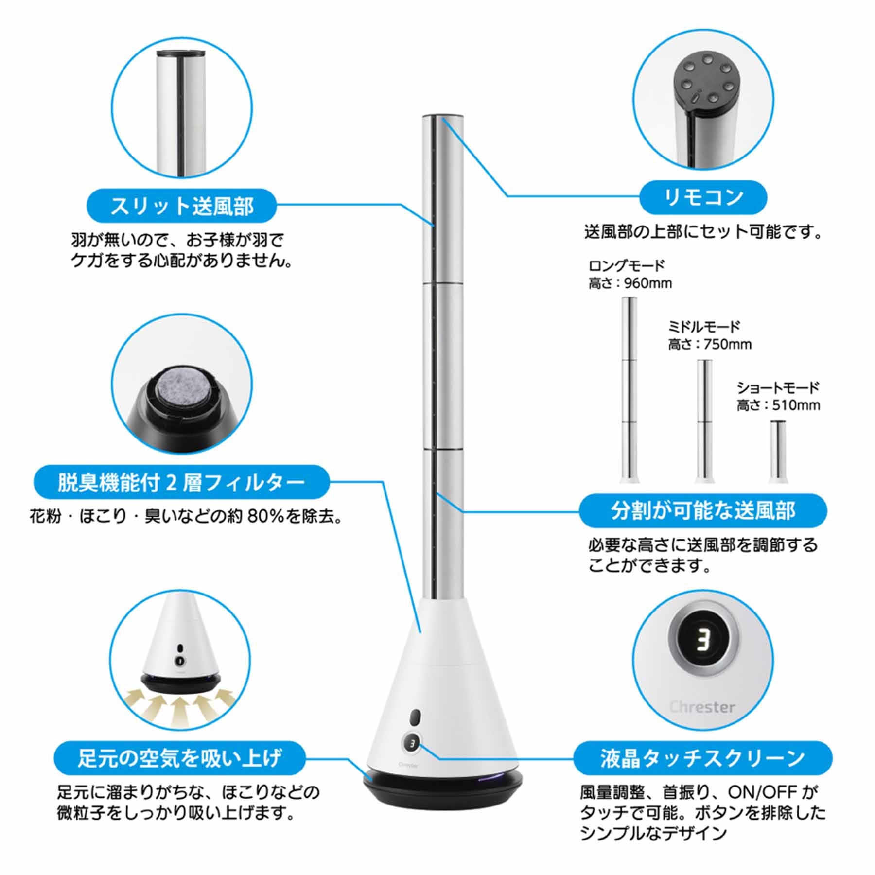 空気清浄・脱臭機能付マルチエアースリムサーキュレーター 白