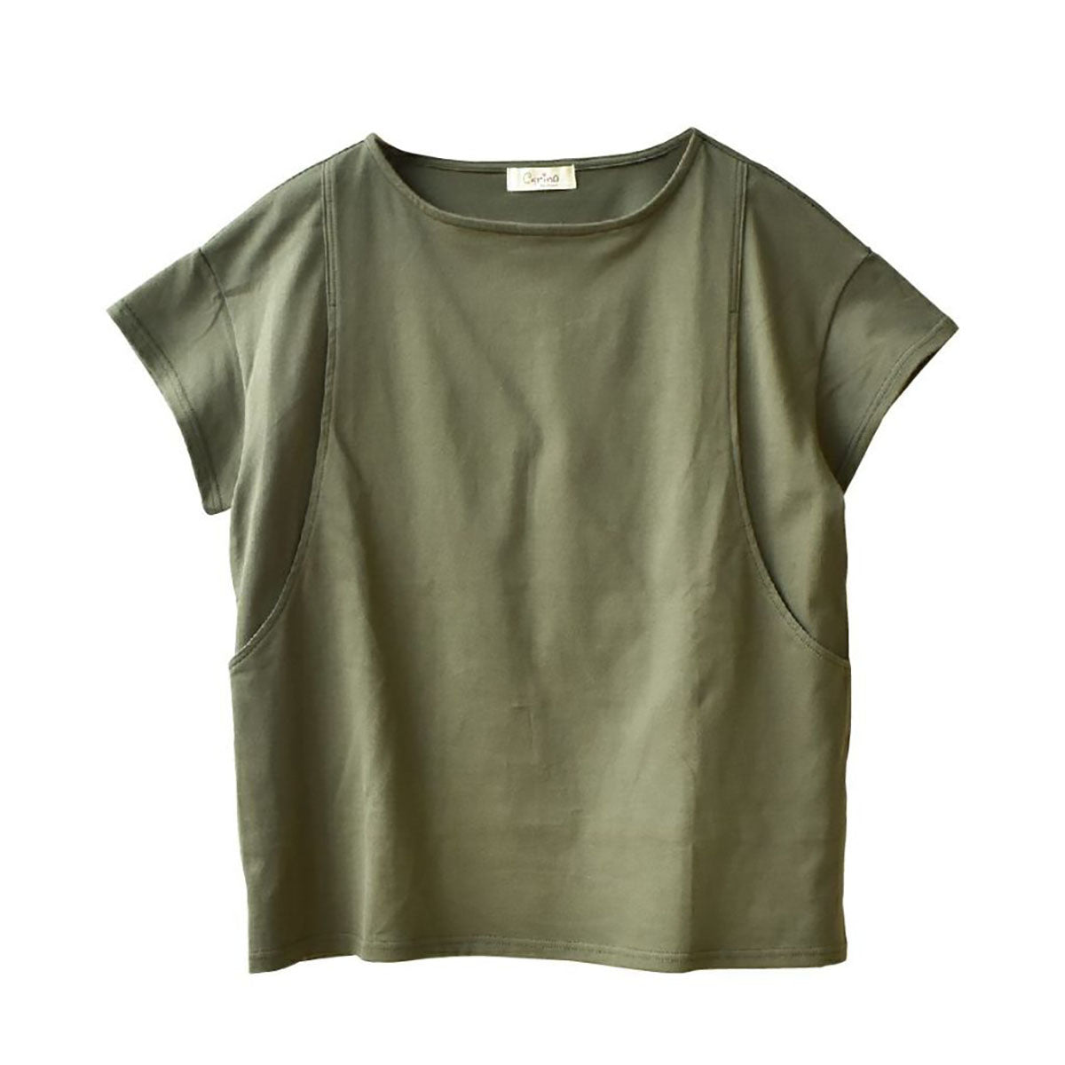 授乳するためのスリット部分が胸の両サイドにあるサイドスリットタイプの授乳服で、授乳がしやすく抱っこ紐との相性が抜群です。